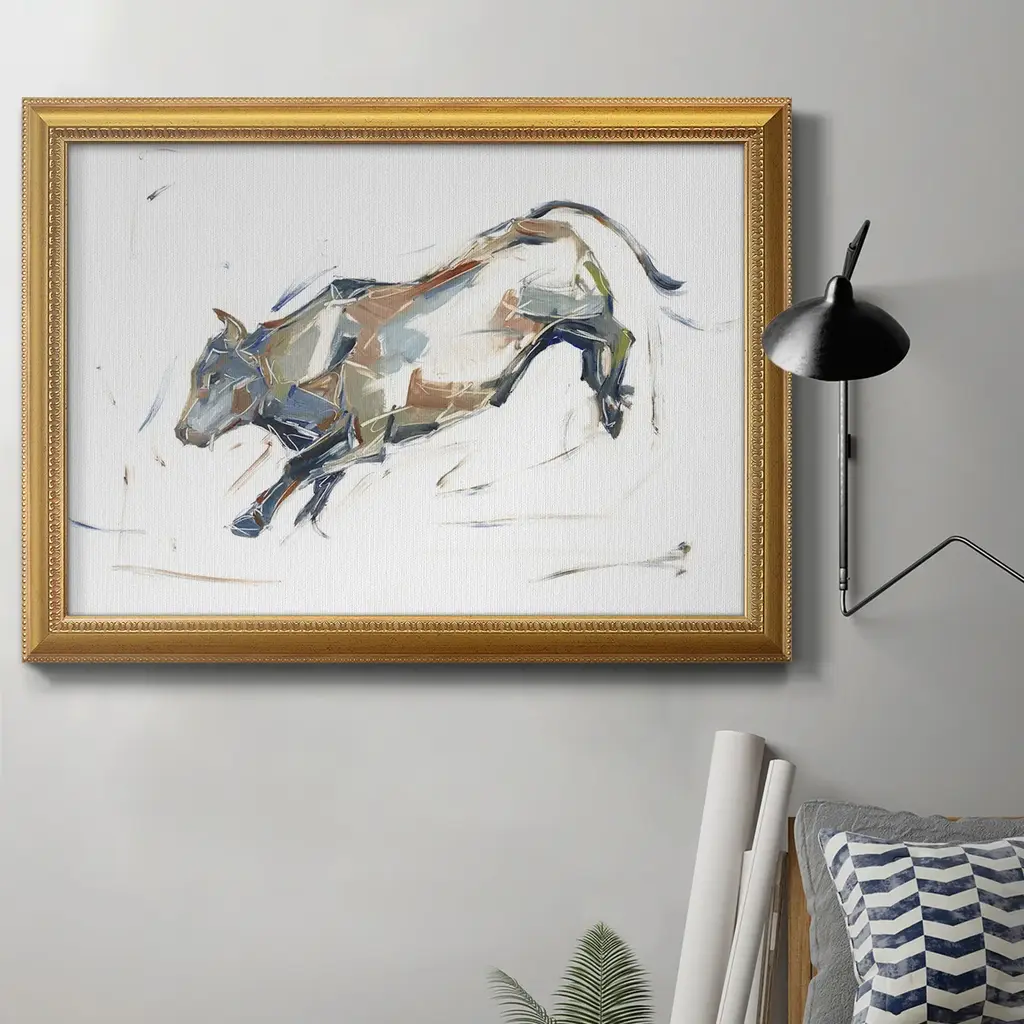 Stupell Blue Galloping Horse Vintage Framed Floater Canvas Wall Art By Susan Friedman - 30 X 24 - Gold