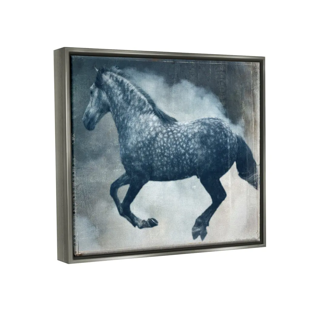 Stupell Blue Galloping Horse Vintage Framed Floater Canvas Wall Art By Susan Friedman - 30 X 24 - Grey