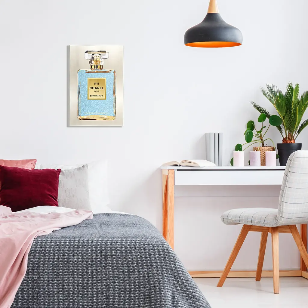 Our wall plaques start as high-quality lithograph prints mounted on durable 0.5-inch thick MDF wood. Each piece is hand finished and comes with a fresh layer of white foil on the sides to give it a crisp, clean look. Plaques arrive ready to hang without installation and come with removable plastic corners to keep them from damage in transit. Stupell Wall Art is made in the USA.Features: Dimensions: 10 x 0.5 x 15 InchesWall Plaque Sizes Include Standard: 10 x 0.5 x 15 Oversized: 13 x 0.5 x 19Wall Art is Ready to Hang with Hardware Free Hanging. No installation required. For Easy Set Up Lean or Layer Artwork on Shelf or Against Wall.All of our wall plaques start off as high quality lithograph prints that are then mounted on durable 0.5 inch thick MDF wood. Each piece is hand finished and comes with a fresh layer of foil on the sides to give it a crisp clean look. Made In USA.Artwork Relates To: Bottle, Perfume, Pattern, Glam, Fashion, BlueDesign by Madeline Blake