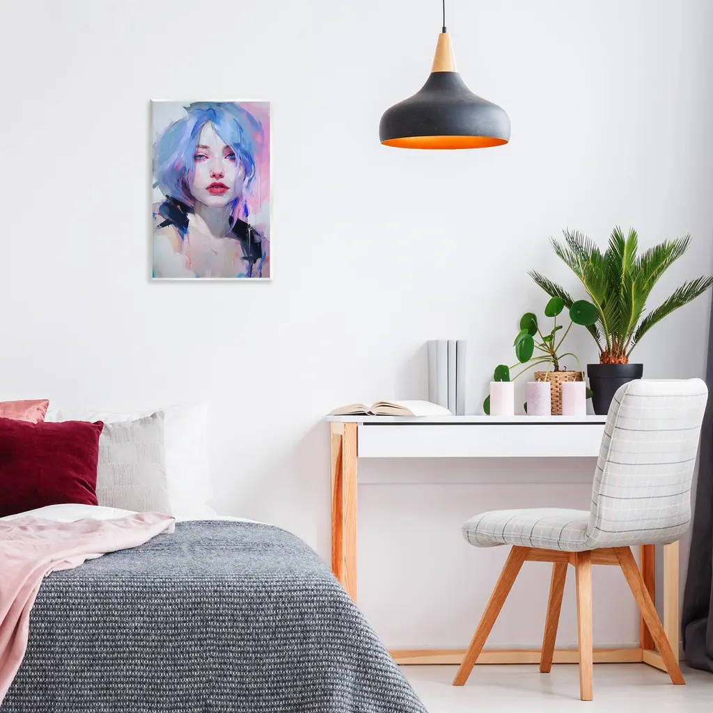 Stupell Blue Haired Woman Visage Wall Plaque Art Design By Roozbeh Bahramali - 13 X 19