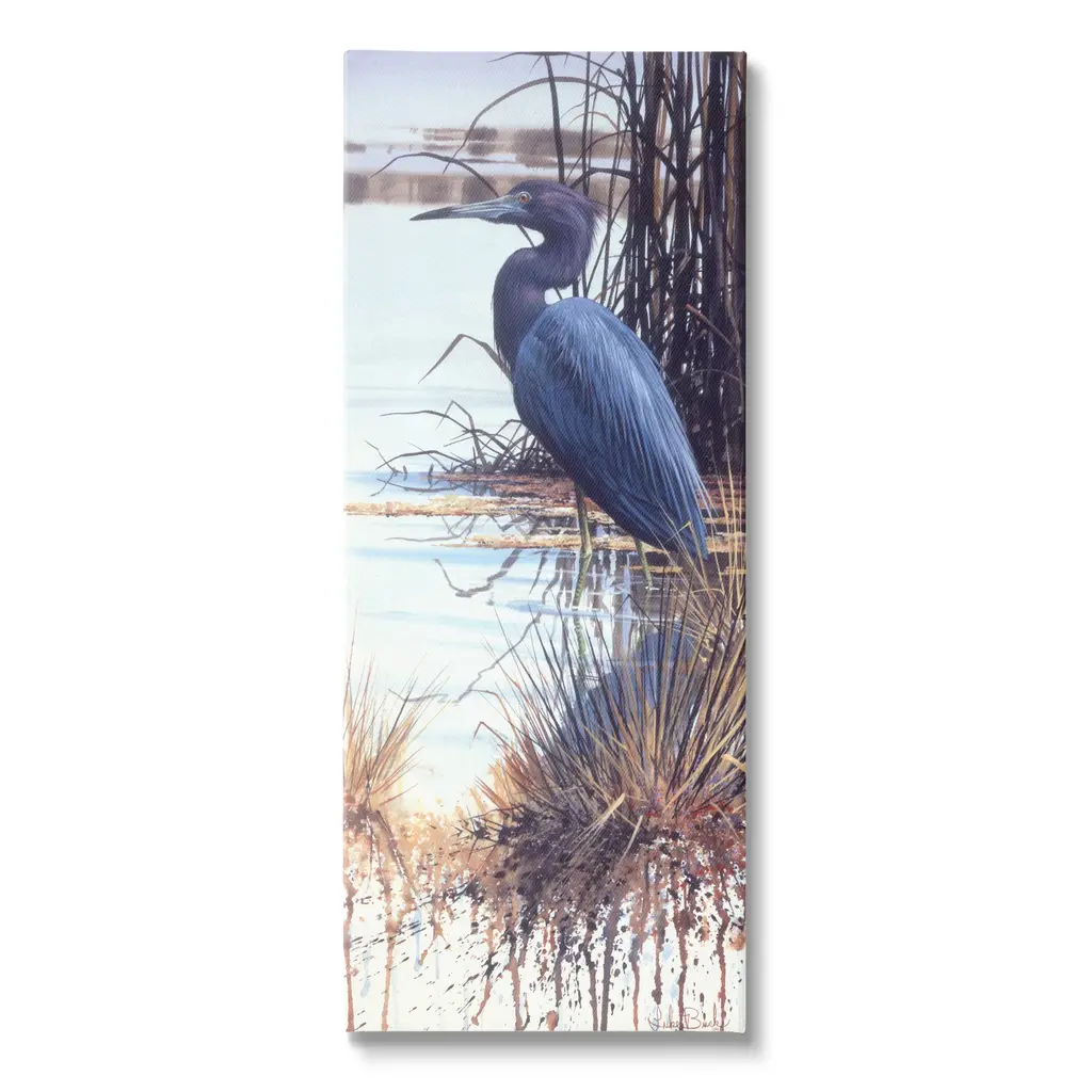 We create our stretched canvas to the highest standards. Using only the highest quality inks and canvas on Mimaki printers, we hand-cut and stretch each piece over a 1.5-inch thick wooden frame for hanging. As a result, the art comes ready to hang on the sturdy ledge with no installation required. Stupell Wall Art is made in the USA.Features: Dimensions: 10 x 1.5 x 24 InchesStretched Canvas Sizes Include Standard: 10 x 1.5 x 24 Large: 13 x 1.5 x 30 X-Large: 17 x 1.5 x 40 Oversized: 20 x 1.5 x 48Wall Art is Ready to Hang with Hardware Free Hanging. No installation required. For Easy Set Up Lean or Layer Artwork on Shelf or Against Wall.Our stretched canvas is created with the highest standards. We use only the highest quality inks and canvas on our in house Mimaki printers, and then hand cut and stretch each piece over a 1.5 inch thick wooden frame for hanging. Made In USA.Artwork Relates To: Animal, Bird, Waterfowl, Heron, Nature, WaterDesign by Luke Buck