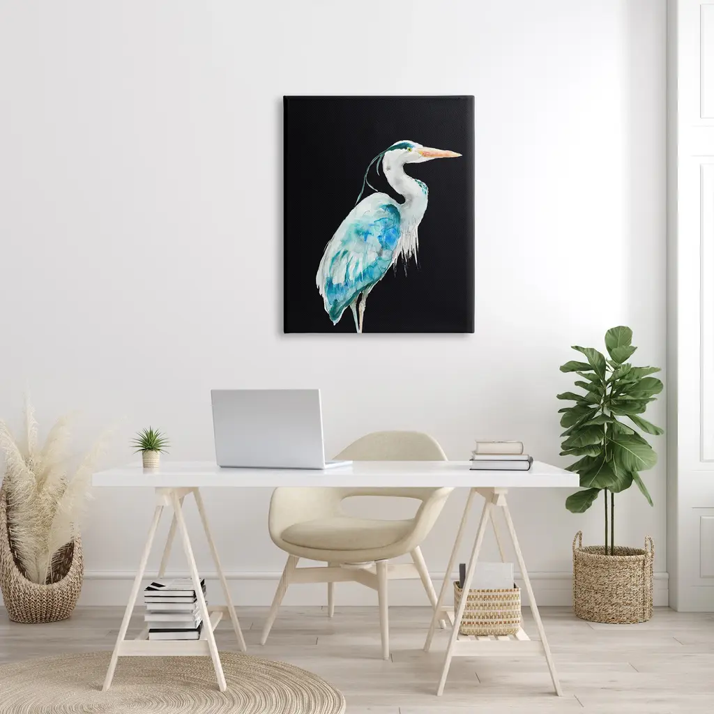 Stupell Blue Heron Pattern Winged Bird Over Black Canvas Wall Art - 30 X 40