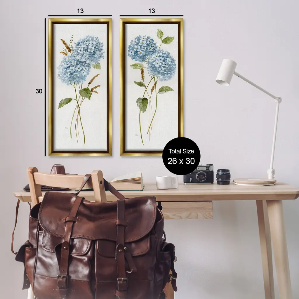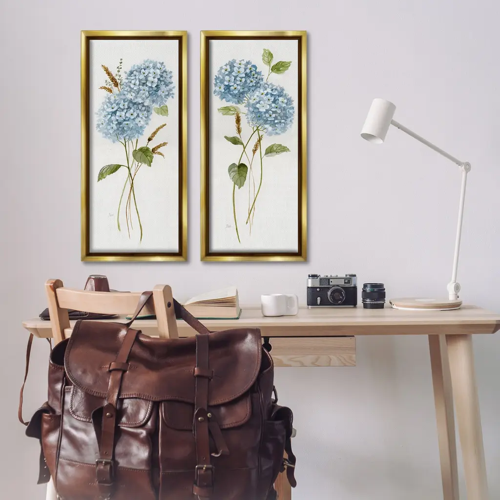 Stupell Blue Hydrangea Long Stems Framed Floater Canvas Wall Art Design By Nan (Set Of 2) - 14 X 31 - Gold
