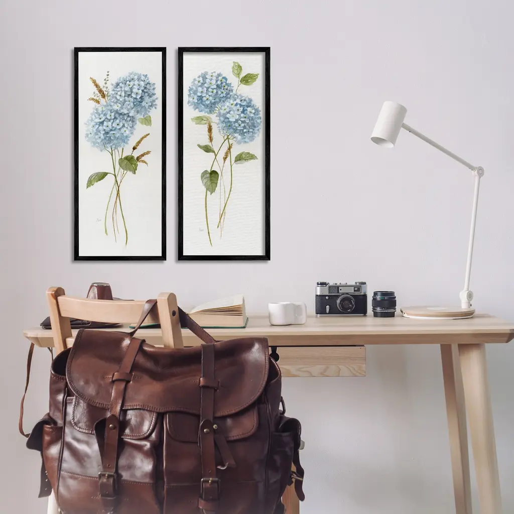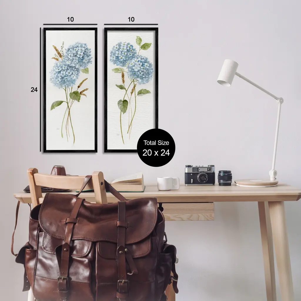 Stupell Blue Hydrangea Long Stems Soft Vintage Florals 2Pc Multi Piece Framed Wall Art Set - 10 X 24 - Black