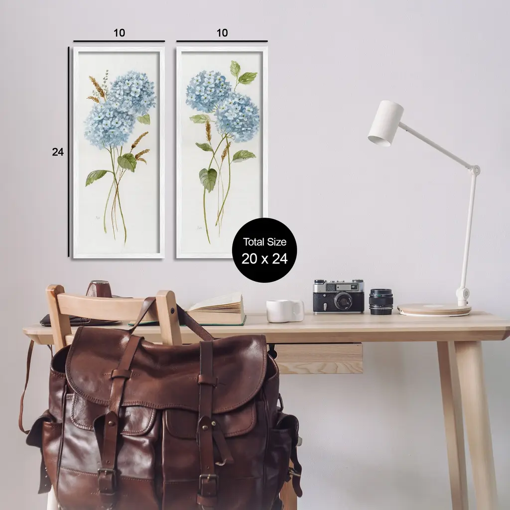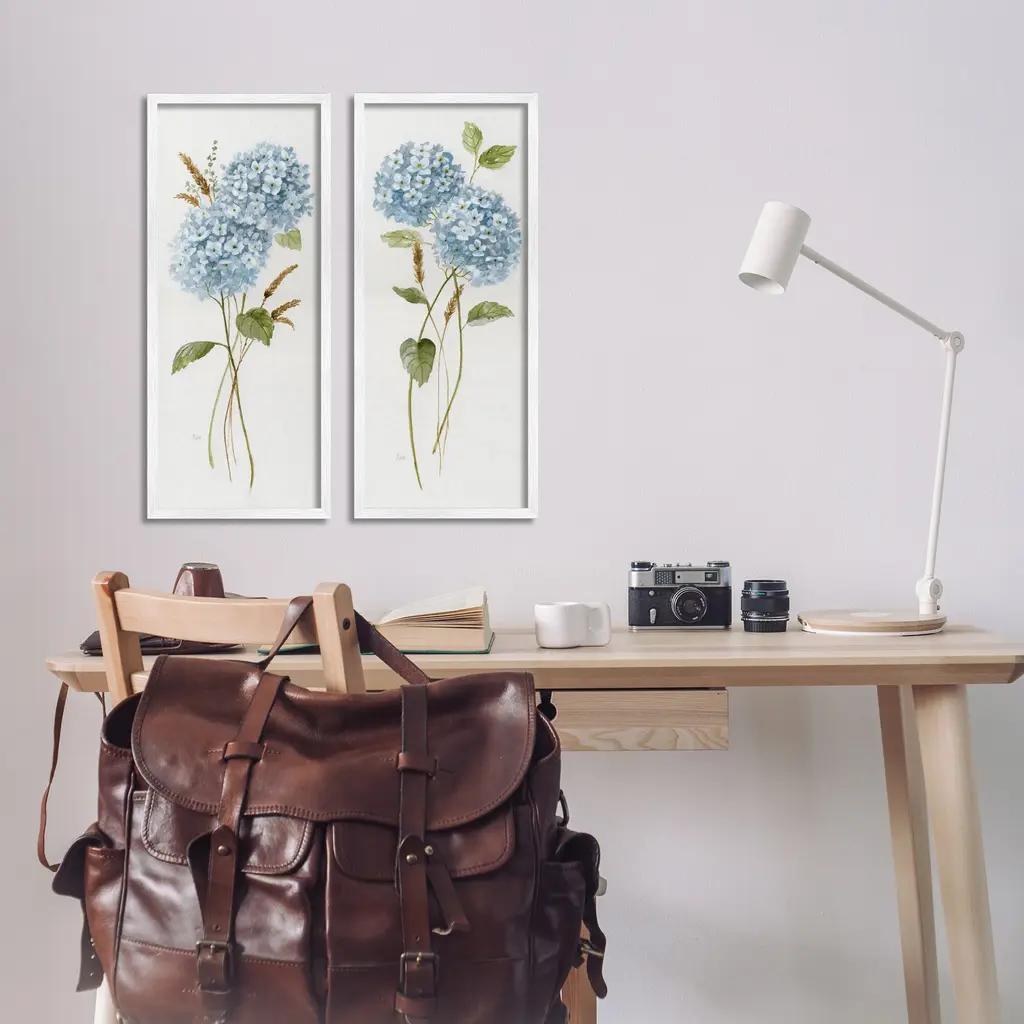 Stupell Blue Hydrangea Long Stems Soft Vintage Florals 2Pc Multi Piece Framed Wall Art Set - 10 X 24 - White