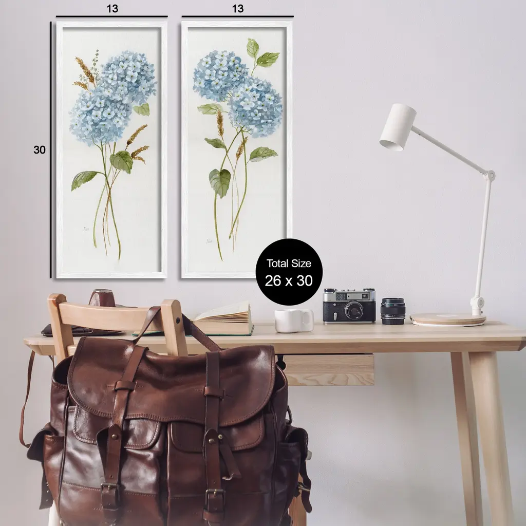 Stupell Blue Hydrangea Long Stems Soft Vintage Florals 2Pc Multi Piece Framed Wall Art Set - 13 X 30 - White