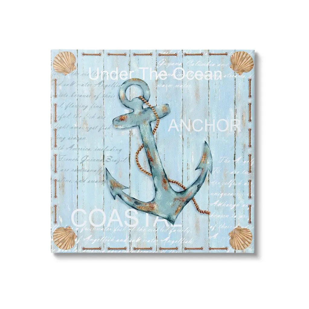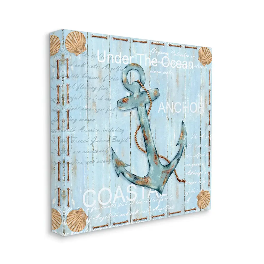 We create our stretched canvas to the highest standards. Using only the highest quality inks and canvas on Mimaki printers, we hand-cut and stretch each piece over a 1.5-inch thick wooden frame for hanging. As a result, the art comes ready to hang on the sturdy ledge with no installation required. Stupell Wall Art is made in the USA.Features: Dimensions: 17 x 1.5 x 17 InchesStretched Canvas Sizes Include Standard: 17 x 1.5 x 17 Large: 24 x 1.5 x 24 X-Large: 30 x 1.5 x 30 Oversized: 36 x 1.5 x 36Wall Art is Ready to Hang with Hardware Free Hanging. No installation required. For Easy Set Up Lean or Layer Artwork on Shelf or Against Wall.Our stretched canvas is created with the highest standards. We use only the highest quality inks and canvas on our in house Mimaki printers, and then hand cut and stretch each piece over a 1.5 inch thick wooden frame for hanging. Made In USA.Artwork Relates To: Anchor, Seashell, Nautical, MaritimeDesign by Emma Leach