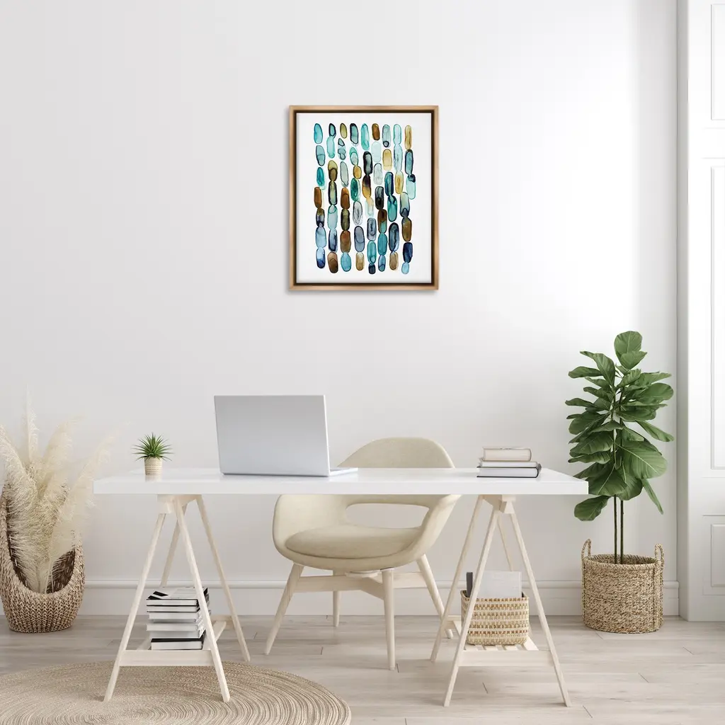 Elevate your home or office to the next level with Stupell Framed Floating Canvas Wall Art. Our premium hand-stretched canvas is mounted securely into a sturdy lightweight frame. The museum-style gap between the wrapped canvas and the box frame gives the illusion of floating artwork. Stupell Wall Art is made in the USA.Features: Dimensions: 17 x 1.7 x 21 Frame, 16 x 1.5 x 20 Canvas ArtFloating Frame Canvas Products are available in sizes 17"x21" and 25"x31". All Floating Frame Canvas Products have a 1.7" Depth.Wall Art is Ready to Hang with Hardware Free Hanging. No Installation required. For Easy Set Up Lean or Layer Artwork on Shelf or Against Wall. Artwork is Permently Fixed into the Frame.Our elevated 1.7" Thick Floating Frame is the perfect complement to our canvas style Wall Art. We use only the highest quality inks in house with industry leading printing solutions. Canvas is hand stretched over a durable wood foundation and then mounted securly into a Modern Box Frame. Made in the USA.Artwork Relates To: Abstract, Modern, Contemporary, Blue, Nautical, ShapesDesign by Lisa Nohren