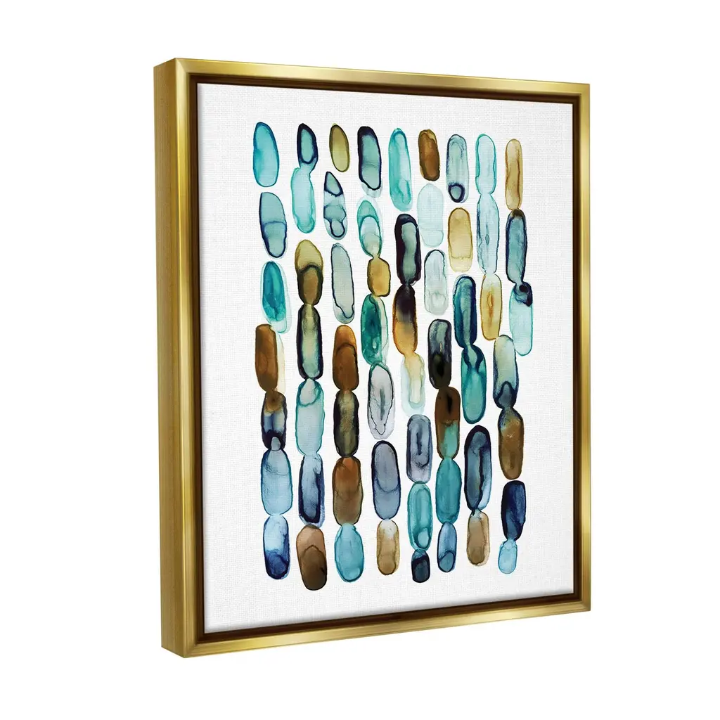 Stupell Blue Oblong Shapes Pattern Framed Floater Canvas Wall Art Design By Lisa Nohren - 25 X 31 - Gold