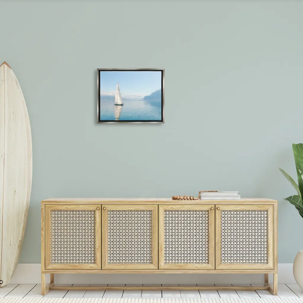 Elevate your home or office to the next level with Stupell Framed Floating Canvas Wall Art. Our premium hand stretched canvas is mounted securly into a sturdy lightweight frame. The museum style gap between wrapped canvas and box frame gives the illusion of floating artwork. Room Type: Living Room, Den, Hallway, Office, Entryway, Study, Dining Room or Bedroom, Guest Room, Studio, Dorm or BoudoirFeatures: Dimensions: 21 x 1.7 x 17 Frame, 20 x 1.5 x 16 Canvas ArtFloating Frame Sizes Include Standard: 21 x 1.7 x 17 Oversized: 31 x 1.7 x 25Wall Art is Ready to Hang - No Installation or Hardware Needed. For Easy Set Up Lean or Layer Artwork on Shelf or Against Wall.Our elevated 1.7" Thick Floating Frame is the perfect complement to our canvas style Wall Art. We use only the highest quality inks in house with industry leading printing solutions. Canvas is hand stretched over a durable wood foundation and then mounted securly into a Modern Box Frame. Made in the USA.Artwork Relates To: Boat, Sailboat, Transportation, Watercraft, WaterDesign by Kim Curinga