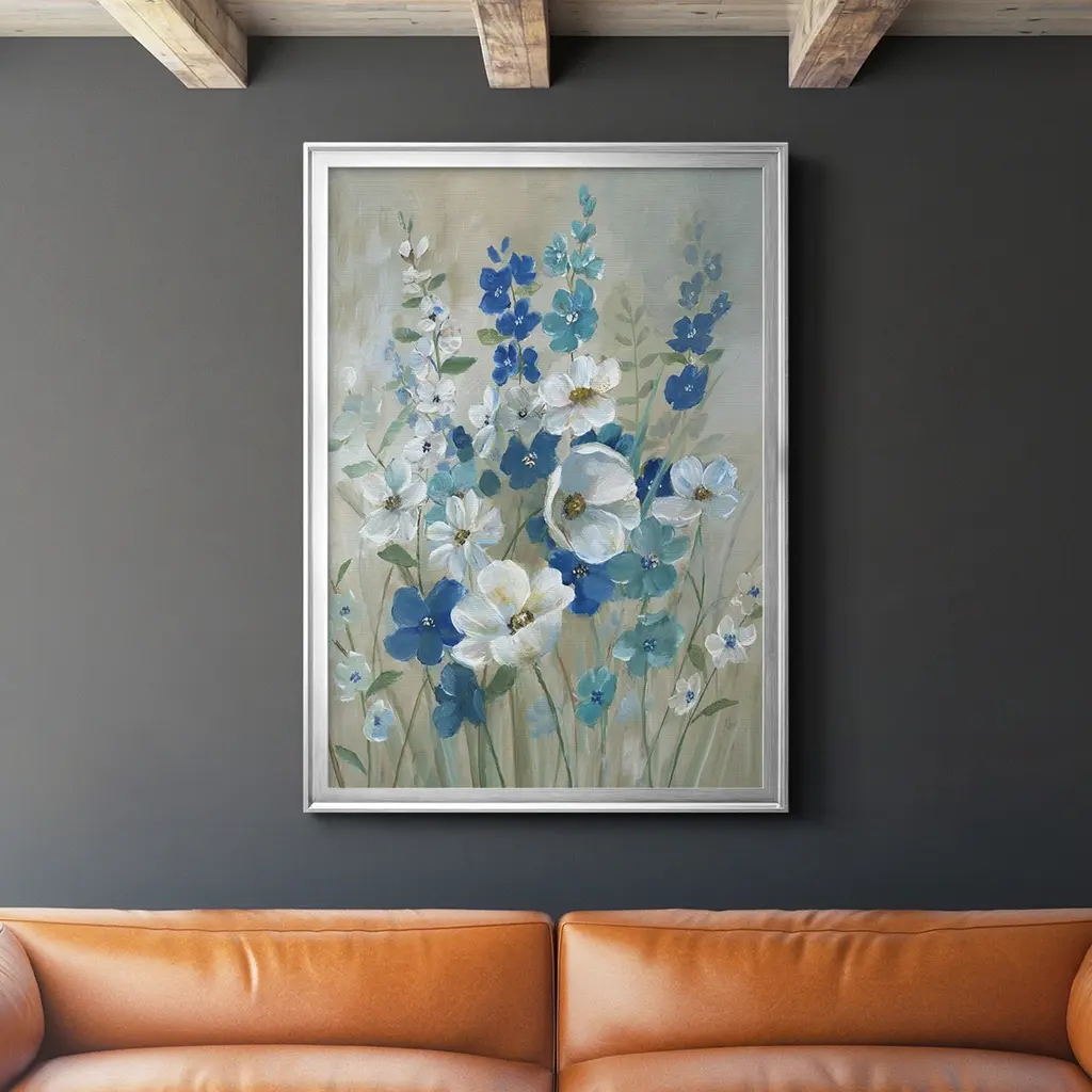 Stupell Blue Pansies Pattern Framed Floater Canvas Wall Art Design By Graffitee Studios - 25 X 31 - Grey