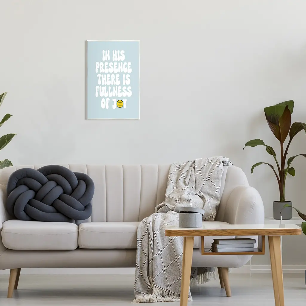 Our wall plaques start as high-quality lithograph prints mounted on durable 0.5-inch thick MDF wood. Each piece is hand finished and comes with a fresh layer of white foil on the sides to give it a crisp, clean look. Plaques arrive ready to hang without installation and come with removable plastic corners to keep them from damage in transit. Stupell Industries Wall Art is made in the USA.Features: Dimensions: 10 x 0.5 x 15 InchesWall Plaque Sizes Include Standard: 10 x 0.5 x 15 Oversized: 13 x 0.5 x 19Wall Art is Ready to Hang with Hardware Free Hanging. No installation required. For Easy Set Up Lean or Layer Artwork on Shelf or Against Wall.All of our wall plaques start off as high quality lithograph prints that are then mounted on durable 0.5 inch thick MDF wood. Each piece is hand finished and comes with a fresh layer of foil on the sides to give it a crisp clean look. Made In USA.Artwork Relates To: Phrase, Minimal, Religious, Christian, In His Presence There is Fullness of JoyDesign by Lil' Rue
