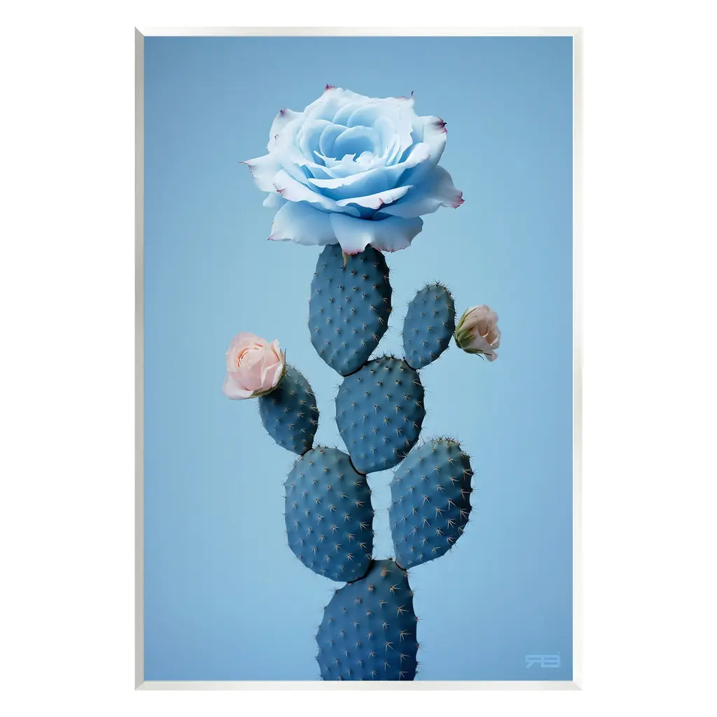 Stupell Blue Rose & Cactus Framed Giclee Art Design By Rb - 11 X 14 - Grey