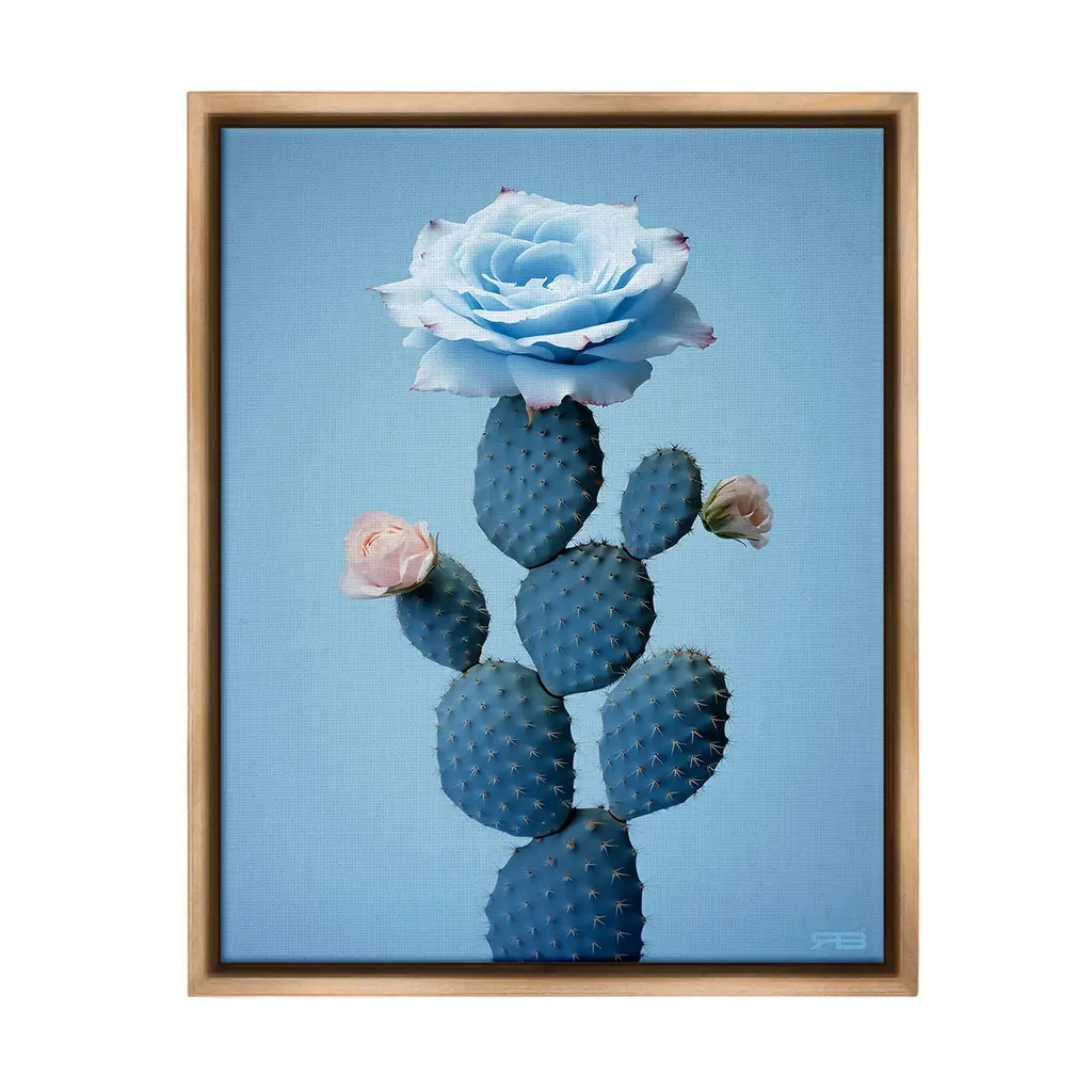 Stupell Blue Rose & Cactus Framed Giclee Art Design By Rb - 24 X 30 - Grey