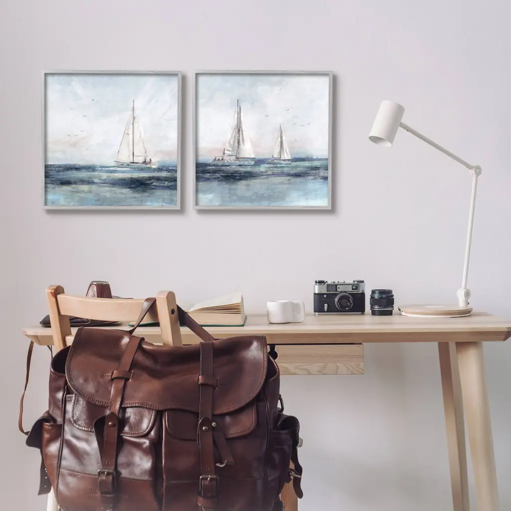 Fill any space in your home or office with our Framed Wall Art Sets. Our textured artwork will add more depth and dimension to any space. Each piece is mounted into a 1.5 inch thick ebony wood grain frame that is ready to hang. Looking for a statement piece? Our boxed framed products are now available in three alluring styles: black, gray farmhouse and white. We have oversized artwork available.Features:Framed Giclee Set Sizes IncludeStandard: 2pc Each is 12 x 1.5 x 12Large: 2pc Each is 17 x 1.5 x 17Oversized: 2pc Each is 24 x 1.5 x 24Wall Art is Ready to Hang - No Installation or Hardware Needed. For Easy Set Up Lean or Layer Artwork on Shelf or Against Wall.Artwork Relates To: Sailboat, Boat, Transportation, Vehicle, Watercraft, Vessel, Ocean, Water, Sky, PaintingCurated Wall Art Sets make it easy for you complete the theme for any room. Our giclee prints are carefully mounted on a durable MDF backing, and then perfectly finished in a 1.5 inch thick woodgrain frame. Mounted frame colors include black, gray farmhouse and white. Made In USA.Design by Nina Blue