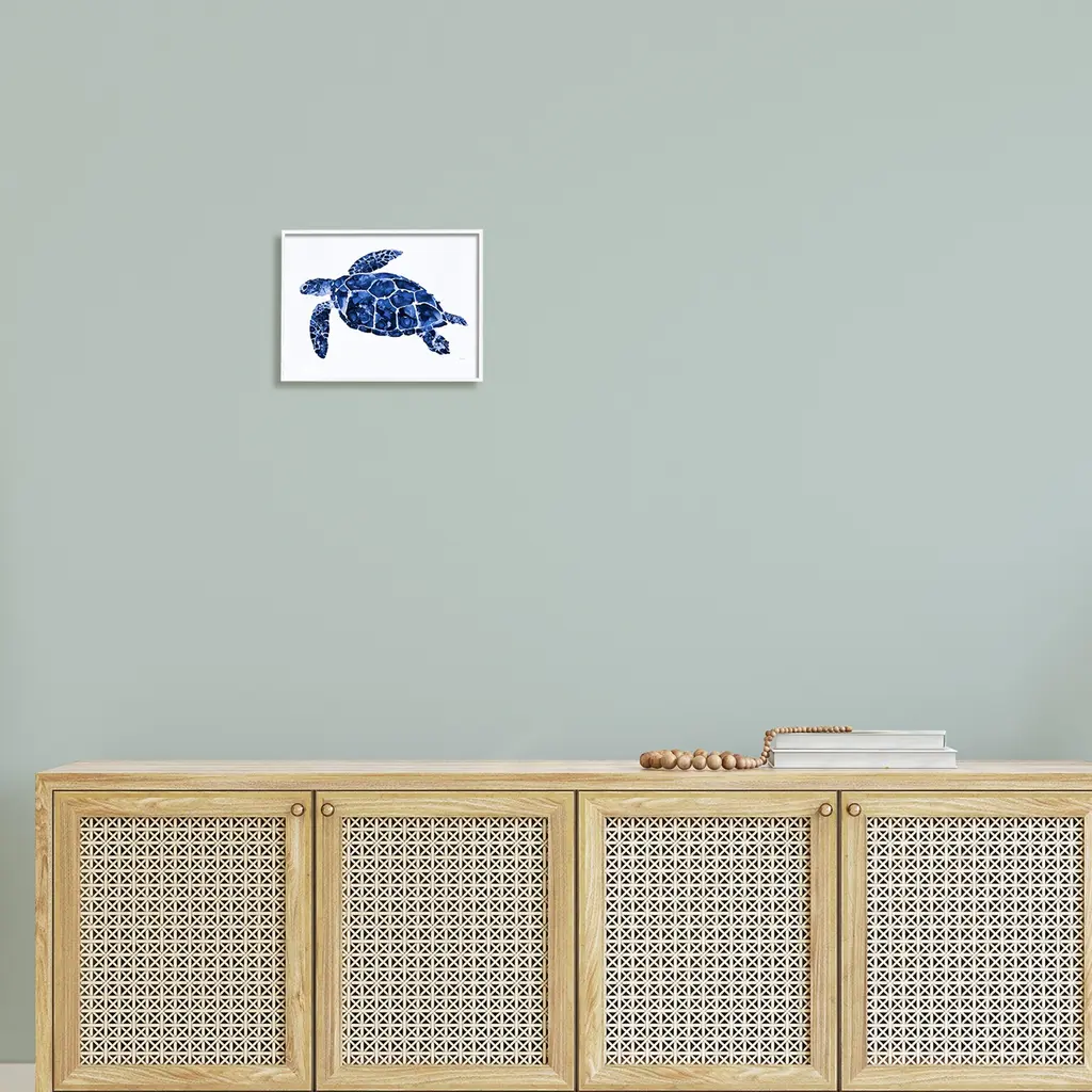 Stupell Blue Speckled Sea Turtle Marine Animal Illustration Framed Wall Art, Design By Patti Mann - 14 X 11 - White