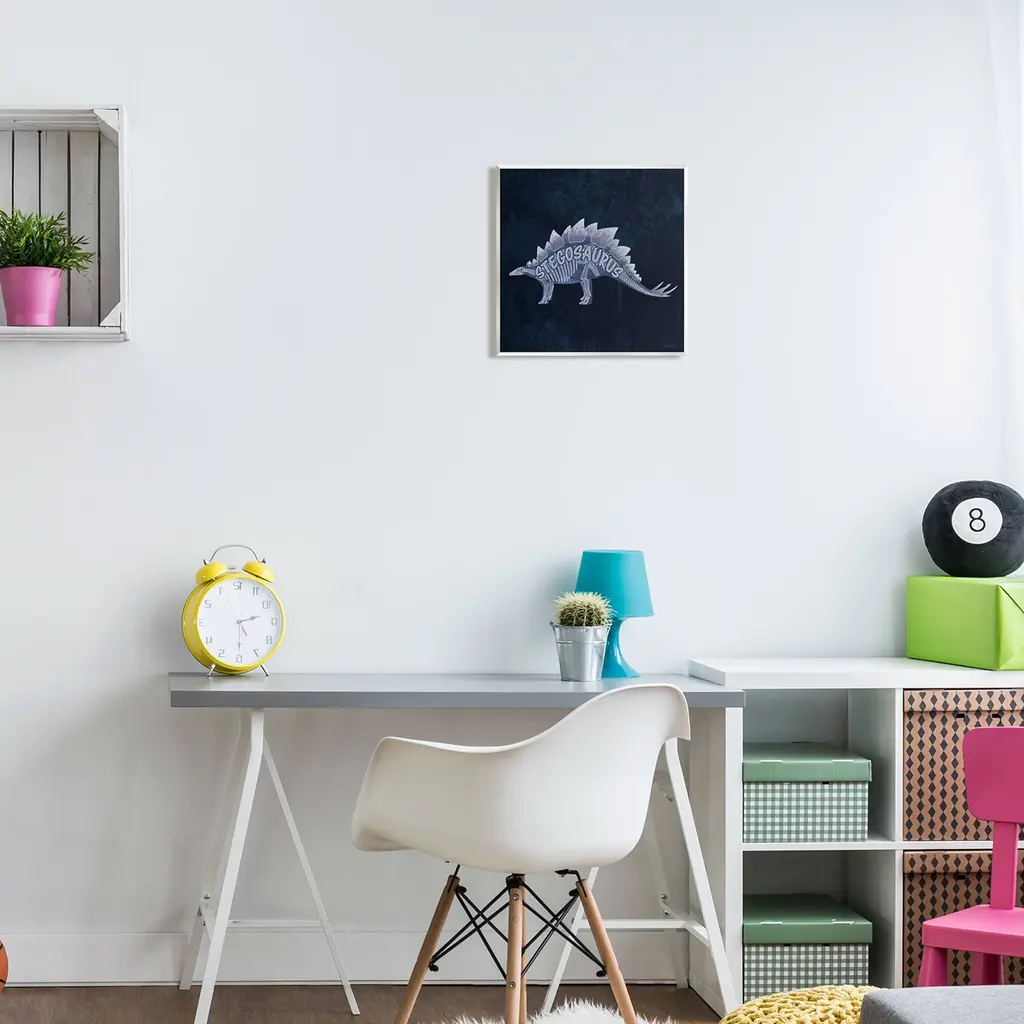 Our wall plaques start as high-quality lithograph prints mounted on durable 0.5-inch thick MDF wood. Each piece is hand finished and comes with a fresh layer of white foil on the sides to give it a crisp, clean look. Plaques arrive ready to hang without installation and come with removable plastic corners to keep them from damage in transit. Stupell Industries Wall Art is made in the USA.Features: Dimensions: 12 x 0.5 x 12 InchesWall Art is Ready to Hang with Hardware Free Hanging. No installation required. For Easy Set Up Lean or Layer Artwork on Shelf or Against Wall.All of our wall plaques start off as high quality lithograph prints that are then mounted on durable 0.5 inch thick MDF wood. Each piece is hand finished and comes with a fresh layer of foil on the sides to give it a crisp clean look. Made In USA.Artwork Relates To: Animal, Dinosaur, Reptile, StegosaurusDesign by Lauren Rader