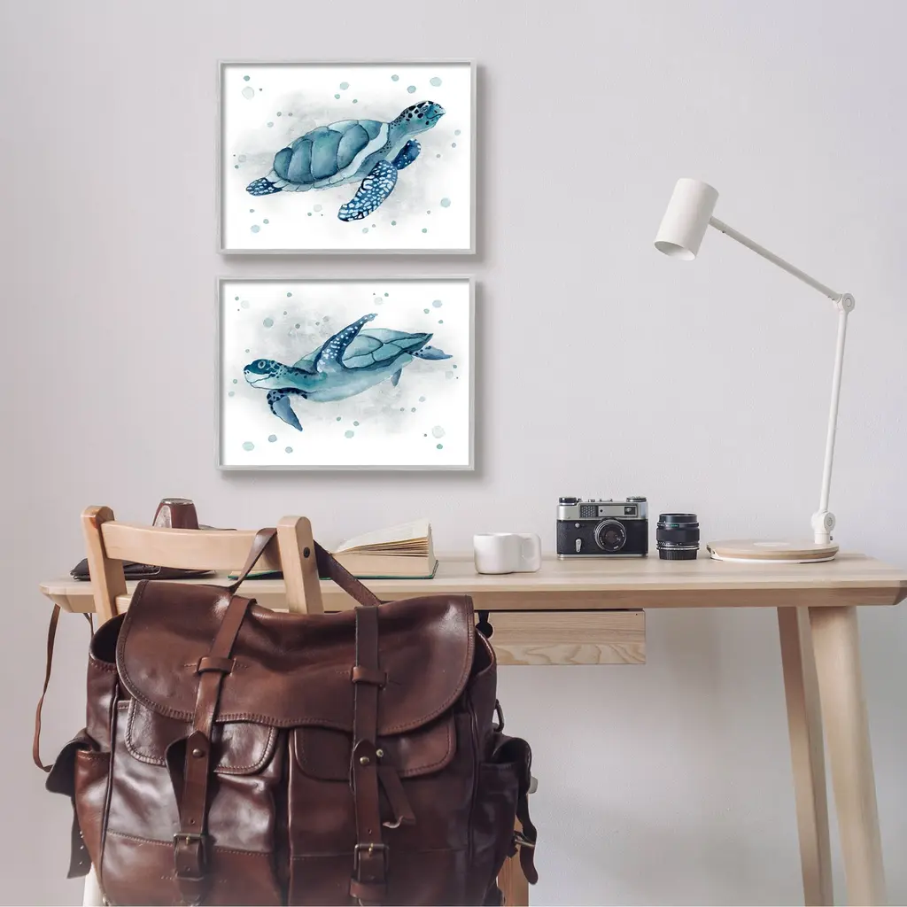 Fill any space in your home or office with our Framed Wall Art Sets. Our textured artwork will add more depth and dimension to any space. Each piece is mounted into a 1.5 inch thick ebony wood grain frame that is ready to hang. Looking for a statement piece? Our boxed framed products are now available in three alluring styles: black, gray farmhouse and white. We have oversized artwork available.Features:Dimensions: 2 Piece Set, Each Panel is 14 x 1.5 x 11 FramedFramed Giclee Set Sizes IncludeStandard: 2pc, Each is 14 x 1.5 x 11Large: 2pc, Each is 20 x 1.5 x 16Oversized: 2pc, Each is 30 x 1.5 x 24Wall Art is Ready to Hang - No Installation or Hardware Needed. For Easy Set Up Lean or Layer Artwork on Shelf or Against Wall.Curated Wall Art Sets make it easy for you complete the theme for any room. Our giclee prints are carefully mounted on a durable MDF backing, and then perfectly finished in a 1.5 inch thick woodgrain frame. Mounted frame colors include black, gray farmhouse and white. Made In USA.Artwork Relates To: Sea Turtle; Turtle; Sea Life; Animal, Aquatic, Nautical, TortoiseDesign by Janet Tava