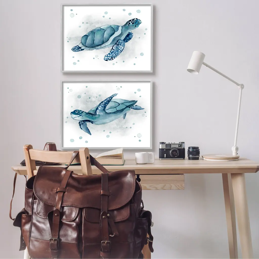 Fill any space in your home or office with our Framed Wall Art Sets. Our textured artwork will add more depth and dimension to any space. Each piece is mounted into a 1.5 inch thick ebony wood grain frame that is ready to hang. Looking for a statement piece? Our boxed framed products are now available in three alluring styles: black, gray farmhouse and white. We have oversized artwork available.Features:Dimensions: 2 Piece Set, Each Panel is 14 x 1.5 x 11 FramedFramed Giclee Set Sizes IncludeStandard: 2pc, Each is 14 x 1.5 x 11Large: 2pc, Each is 20 x 1.5 x 16Oversized: 2pc, Each is 30 x 1.5 x 24Wall Art is Ready to Hang - No Installation or Hardware Needed. For Easy Set Up Lean or Layer Artwork on Shelf or Against Wall.Curated Wall Art Sets make it easy for you complete the theme for any room. Our giclee prints are carefully mounted on a durable MDF backing, and then perfectly finished in a 1.5 inch thick woodgrain frame. Mounted frame colors include black, gray farmhouse and white. Made In USA.Artwork Relates To: Sea Turtle; Turtle; Sea Life; Animal, Aquatic, Nautical, TortoiseDesign by Janet Tava