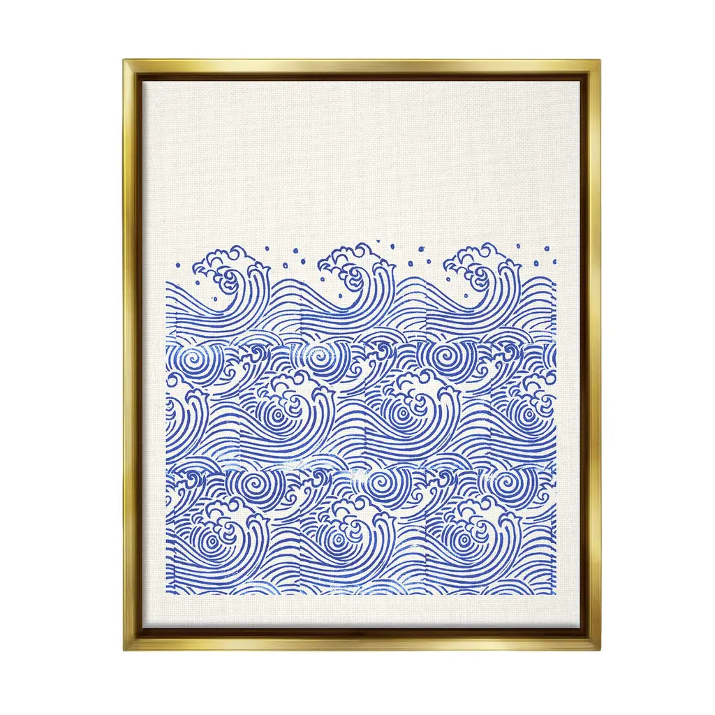 Stupell Blue Traditional Waves Framed Floater Canvas Wall Art Design By Marie Le Moal - 18 X 18 - Gold