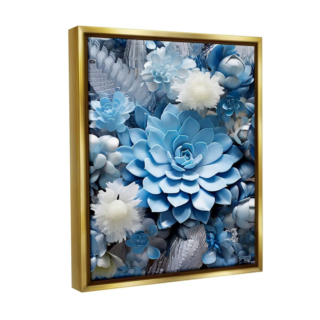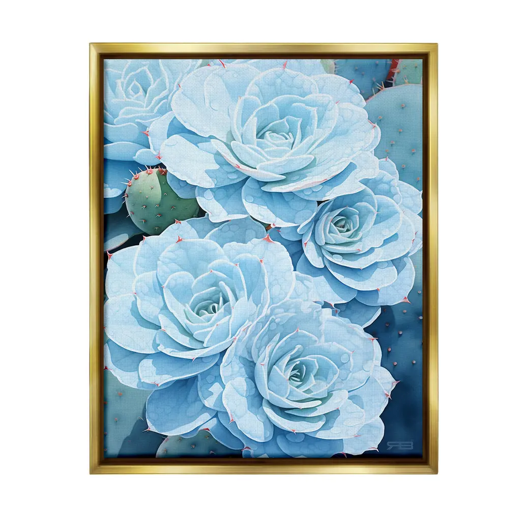 Stupell Blue Varied Succulents Framed Floater Canvas Wall Art Design By Rb - 17 X 21 - Gold