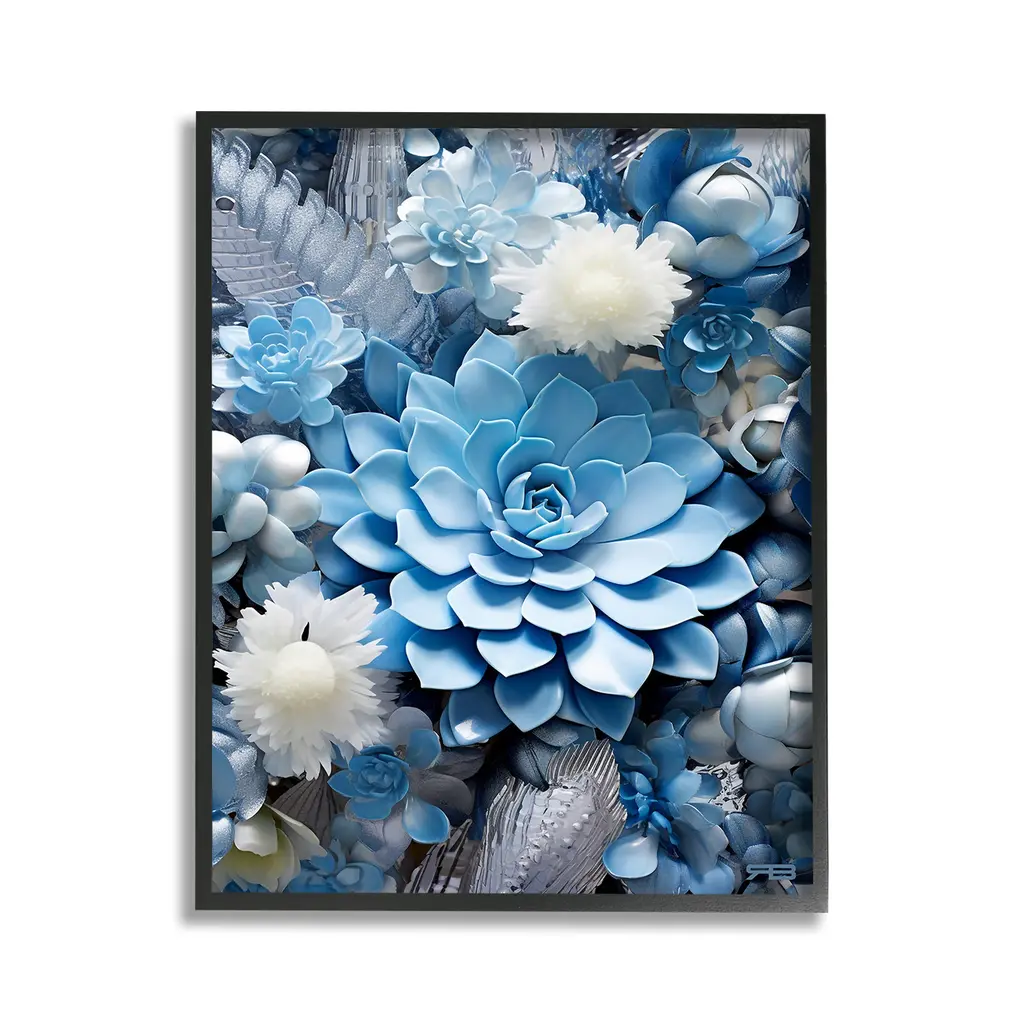 Stupell Blue Varied Succulents Framed Giclee Art Design By Rb - 16 X 20 - Black