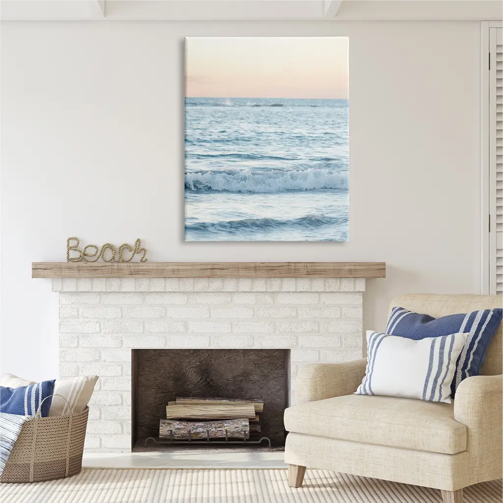 We create our stretched canvas to the highest standards. Using only the highest quality inks and canvas on Mimaki printers, we hand-cut and stretch each piece over a 1.5-inch thick wooden frame for hanging. As a result, the art comes ready to hang on the sturdy ledge with no installation required. Stupell Wall Art is made in the USA.Features: Dimensions: 16 x 1.5 x 20 InchesStretched Canvas Sizes Include Standard: 16 x 1.5 x 20 Large: 20 x 1.5 x 30 X-Large: 30 x 1.5 x 40 Oversized: 36 x 1.5 x 48Wall Art is Ready to Hang with Hardware Free Hanging. No installation required. For Easy Set Up Lean or Layer Artwork on Shelf or Against Wall.Our stretched canvas is created with the highest standards. We use only the highest quality inks and canvas on our in house Mimaki printers, and then hand cut and stretch each piece over a 1.5 inch thick wooden frame for hanging. Made In USA.Artwork Relates To: Horizon, Sky, Sea, Water, Sea Waves, Scenery, Beach, Coast, Shoreline, OceanDesign by Sisi and Seb
