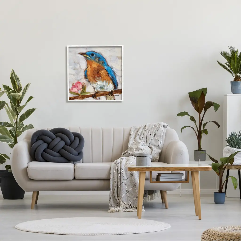 Our Framed Giclee Wall Art adds a touch of class to any space in your home or office. Frames are available in three alluring styles: black, gray farmhouse and white. Our textured artwork will add more depth and dimension to any space. Each piece is mounted with a 1.5 inch thick wood grain frame that is ready to hang! Looking for a statement piece? We have oversized artwork available. Room Type: Living Room, Den, Hallway, Office, Entryway, Study, Dining Room or Bedroom, Guest Room, Studio, Dorm or BoudoirFeatures: Dimensions: 12 x 1.5 x 12 FramedFramed Giclee Sizes Include Standard: 12 x 1.5 x 12 Large: 17 x 1.5 x 17 Oversized: 24 x 1.5 x 24Wall Art is Ready to Hang - No Installation or Hardware Needed. For Easy Set Up Lean or Layer Artwork on Shelf or Against Wall.Our giclée prints are carefully mounted on a durable MDF backing, and then perfectly finished in a 1.5 inch thick woodgrain frame. Mounted frame colors include black, gray farmhouse and white. Made In USA.Artwork Relates To: Animal, Bird, Bluebird, Flower, Plant, Rose, PaintingDesign by Sara G. Designs