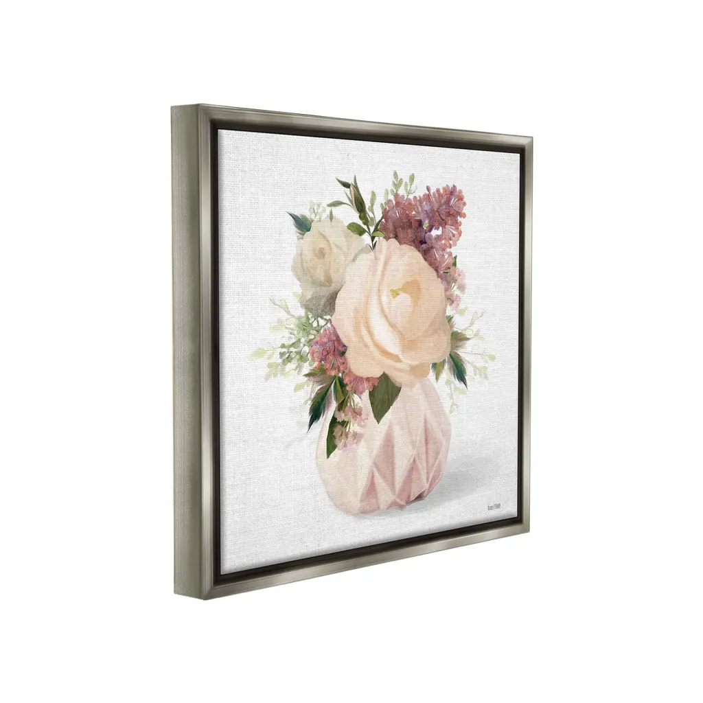 Stupell Blush Pink Bouquet Framed Floater Canvas Wall Art Design By House Fenway - 25 X 25 - Grey
