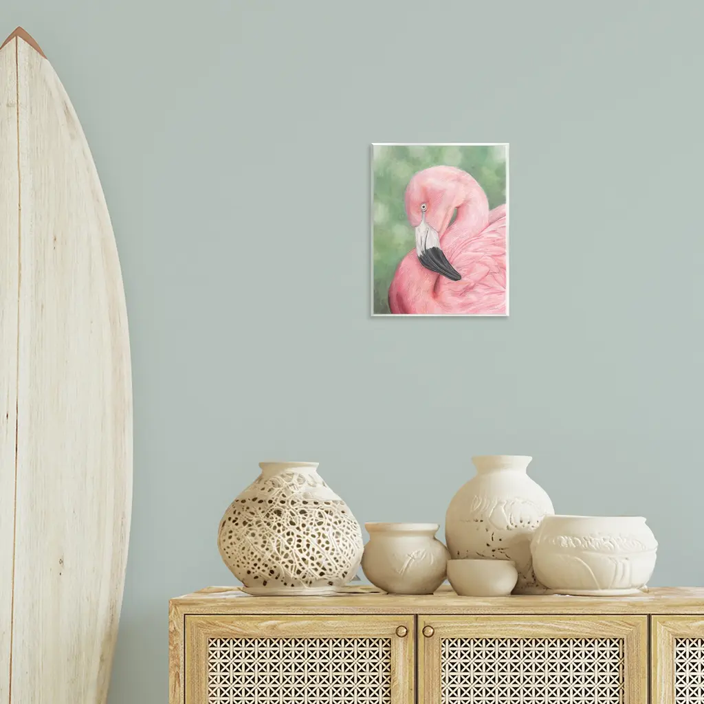 Our wall plaques start as high-quality lithograph prints mounted on durable 0.5-inch thick MDF wood. Each piece is hand finished and comes with a fresh layer of white foil on the sides to give it a crisp, clean look. Plaques arrive ready to hang without installation and come with removable plastic corners to keep them from damage in transit. Stupell Wall Art is made in the USA.Features: Dimensions: 11 x 0.5 x 14 InchesWall Art is Ready to Hang with Hardware Free Hanging. No installation required. For Easy Set Up Lean or Layer Artwork on Shelf or Against Wall.All of our wall plaques start off as high quality lithograph prints that are then mounted on durable 0.5 inch thick MDF wood. Each piece is hand finished and comes with a fresh layer of foil on the sides to give it a crisp clean look. Made In USA.Artwork Relates To: Animal, Bird, Beak, Flamingo, TropicalDesign by Connie Resch