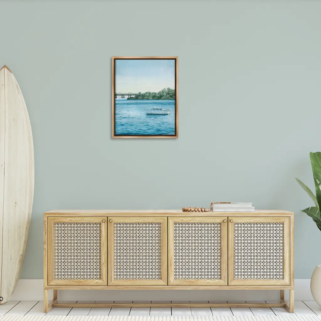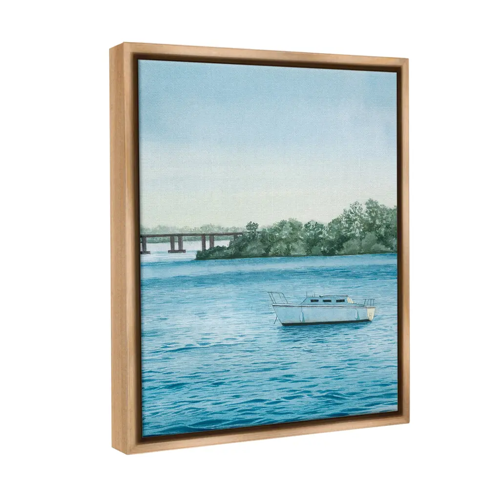 Elevate your home or office to the next level with Stupell Framed Floating Canvas Wall Art. Our premium hand-stretched canvas is mounted securely into a sturdy lightweight frame. The museum-style gap between the wrapped canvas and the box frame gives the illusion of floating artwork. Stupell Wall Art is made in the USA.Features: Dimensions: 17 x 1.7 x 21 Frame, 16 x 1.5 x 20 Canvas ArtFloating Frame Canvas Products are available in sizes 17"x21" and 25"x31". All Floating Frame Canvas Products have a 1.7" Depth.Wall Art is Ready to Hang with Hardware Free Hanging. No Installation required. For Easy Set Up Lean or Layer Artwork on Shelf or Against Wall. Artwork is Permently Fixed into the Frame.Our elevated 1.7" Thick Floating Frame is the perfect complement to our canvas style Wall Art. We use only the highest quality inks in house with industry leading printing solutions. Canvas is hand stretched over a durable wood foundation and then mounted securly into a Modern Box Frame. Made in the USA.Artwork Relates To: Boat, Sailboat, Scenery, Water, Watercraft, Sea, Lake, Boating, Waterfront, Sky, LandscapeDesign by Grace Popp