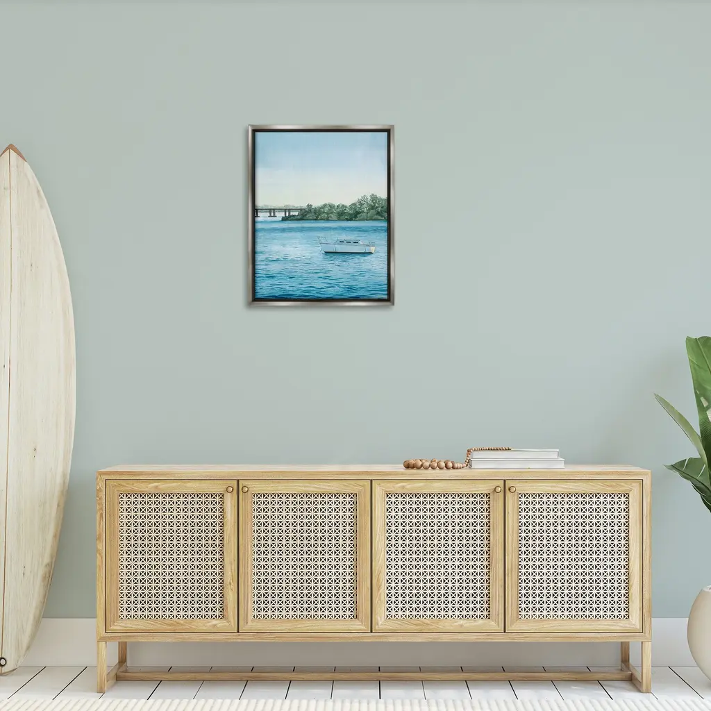 Elevate your home or office to the next level with Stupell Framed Floating Canvas Wall Art. Our premium hand-stretched canvas is mounted securely into a sturdy lightweight frame. The museum-style gap between the wrapped canvas and the box frame gives the illusion of floating artwork. Stupell Wall Art is made in the USA.Features: Dimensions: 17 x 1.7 x 21 Frame, 16 x 1.5 x 20 Canvas ArtFloating Frame Canvas Products are available in sizes 17"x21" and 25"x31". All Floating Frame Canvas Products have a 1.7" Depth.Wall Art is Ready to Hang with Hardware Free Hanging. No Installation required. For Easy Set Up Lean or Layer Artwork on Shelf or Against Wall. Artwork is Permently Fixed into the Frame.Our elevated 1.7" Thick Floating Frame is the perfect complement to our canvas style Wall Art. We use only the highest quality inks in house with industry leading printing solutions. Canvas is hand stretched over a durable wood foundation and then mounted securly into a Modern Box Frame. Made in the USA.Artwork Relates To: Boat, Sailboat, Scenery, Water, Watercraft, Sea, Lake, Boating, Waterfront, Sky, LandscapeDesign by Grace Popp