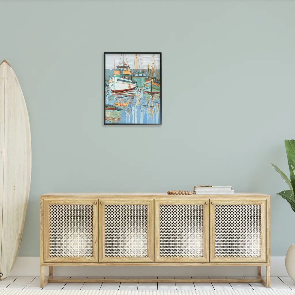 Add dimension to any room with our textured Framed Giclee Artwork. Our framed artwork is securely mounted into a 1.5-inch thick wood grain frame and ready to hang. Frames are available in three alluring styles: black, gray farmhouse and white. In addition, you should check out our oversized options if you want a statement piece. Stupell Wall Art is made in the USA.Features: Dimensions: 11 x 1.5 x 14 FramedFramed Giclee Products are available in the sizes 11"x14", 16"x20" or 24"x30". All Framed Giclee Products have a 1.5" Depth. Wall Art is Ready to Hang with Hardware Free Hanging. No installation required. For Easy Set Up Lean or Layer Artwork on Shelf or Against Wall.Our giclée prints are carefully mounted on a durable MDF backing, and then perfectly finished in a 1.5 inch thick woodgrain frame. Mounted frame colors include black, gray farmhouse and white. Made In USA.Artwork Relates To: Boat, Sailboat, Scenery, Water, Watercraft, Sea, Lake, Boating, Waterfront, Landscape, Harbor, PierDesign by Melissa Wang
