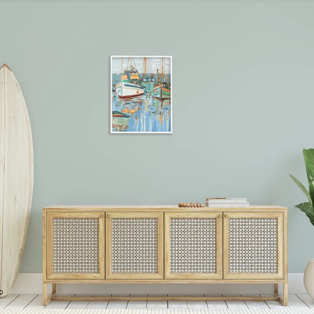 Add dimension to any room with our textured Framed Giclee Artwork. Our framed artwork is securely mounted into a 1.5-inch thick wood grain frame and ready to hang. Frames are available in three alluring styles: black, gray farmhouse and white. In addition, you should check out our oversized options if you want a statement piece. Stupell Wall Art is made in the USA.Features: Dimensions: 11 x 1.5 x 14 FramedFramed Giclee Products are available in the sizes 11"x14", 16"x20" or 24"x30". All Framed Giclee Products have a 1.5" Depth. Wall Art is Ready to Hang with Hardware Free Hanging. No installation required. For Easy Set Up Lean or Layer Artwork on Shelf or Against Wall.Our giclée prints are carefully mounted on a durable MDF backing, and then perfectly finished in a 1.5 inch thick woodgrain frame. Mounted frame colors include black, gray farmhouse and white. Made In USA.Artwork Relates To: Boat, Sailboat, Scenery, Water, Watercraft, Sea, Lake, Boating, Waterfront, Landscape, Harbor, PierDesign by Melissa Wang