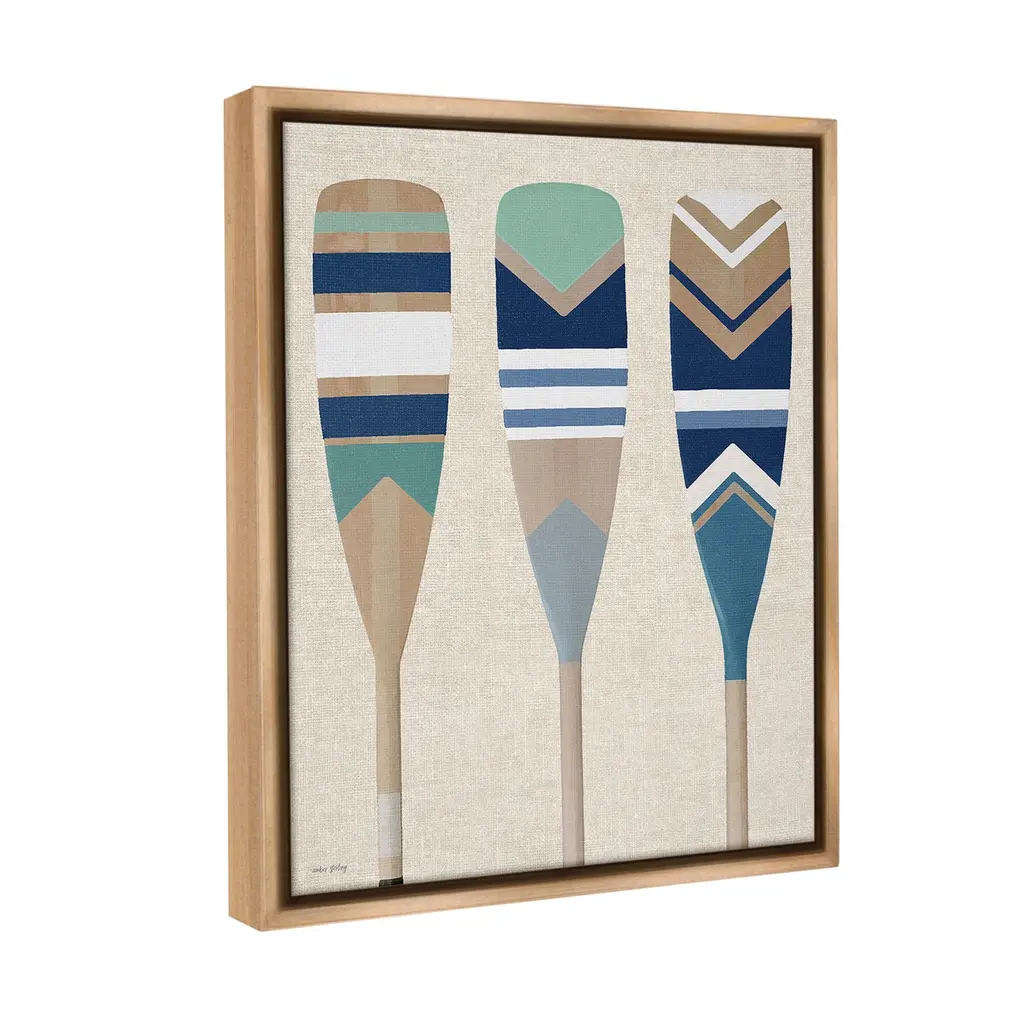 Elevate your home or office to the next level with Stupell Framed Floating Canvas Wall Art. Our premium hand-stretched canvas is mounted securely into a sturdy lightweight frame. The museum-style gap between the wrapped canvas and the box frame gives the illusion of floating artwork. Stupell Wall Art is made in the USA.Features: Dimensions: 17 x 1.7 x 21 Frame, 16 x 1.5 x 20 Canvas ArtFloating Frame Canvas Products are available in sizes 17"x21" and 25"x31". All Floating Frame Canvas Products have a 1.7" Depth.Wall Art is Ready to Hang with Hardware Free Hanging. No Installation required. For Easy Set Up Lean or Layer Artwork on Shelf or Against Wall. Artwork is Permently Fixed into the Frame.Our elevated 1.7" Thick Floating Frame is the perfect complement to our canvas style Wall Art. We use only the highest quality inks in house with industry leading printing solutions. Canvas is hand stretched over a durable wood foundation and then mounted securly into a Modern Box Frame. Made in the USA.Artwork Relates To: Oars, Paddle, Lake House, Rustic, Stripes, Pattern, Boating, Boat, NauticalDesign by Amber Sterling