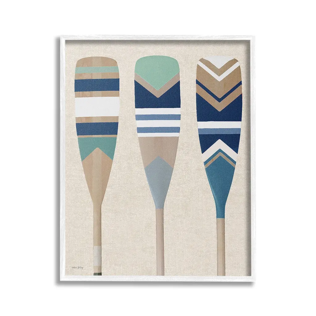 Stupell Boat Oar Trio Framed Giclee Art Design By Amber Sterling - 16 X 20 - White