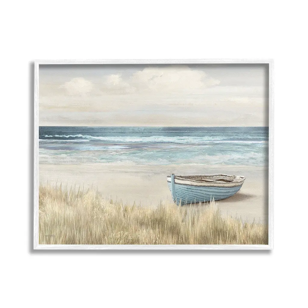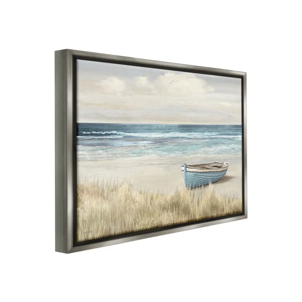 Elevate your home or office to the next level with Stupell Framed Floating Canvas Wall Art. Our premium hand-stretched canvas is mounted securely into a sturdy lightweight frame. The museum-style gap between the wrapped canvas and the box frame gives the illusion of floating artwork. Stupell Wall Art is made in the USA.Features: Dimensions: 21 x 1.7 x 17 Frame, 20 x 1.5 x 16 Canvas ArtFloating Frame Canvas Products are available in sizes 21"x17" and 31"x25". All Floating Frame Canvas Products have a 1.7" Depth.Wall Art is Ready to Hang with Hardware Free Hanging. No Installation required. For Easy Set Up Lean or Layer Artwork on Shelf or Against Wall. Artwork is Permently Fixed into the Frame.Our elevated 1.7" Thick Floating Frame is the perfect complement to our canvas style Wall Art. We use only the highest quality inks in house with industry leading printing solutions. Canvas is hand stretched over a durable wood foundation and then mounted securly into a Modern Box Frame. Made in the USA.Artwork Relates To: Painting, Sea, Water, Beach, Coast, Shoreline, Sky, Scenery, Horizon, Landscape, Boat, WatercraftDesign by Amber Sterling
