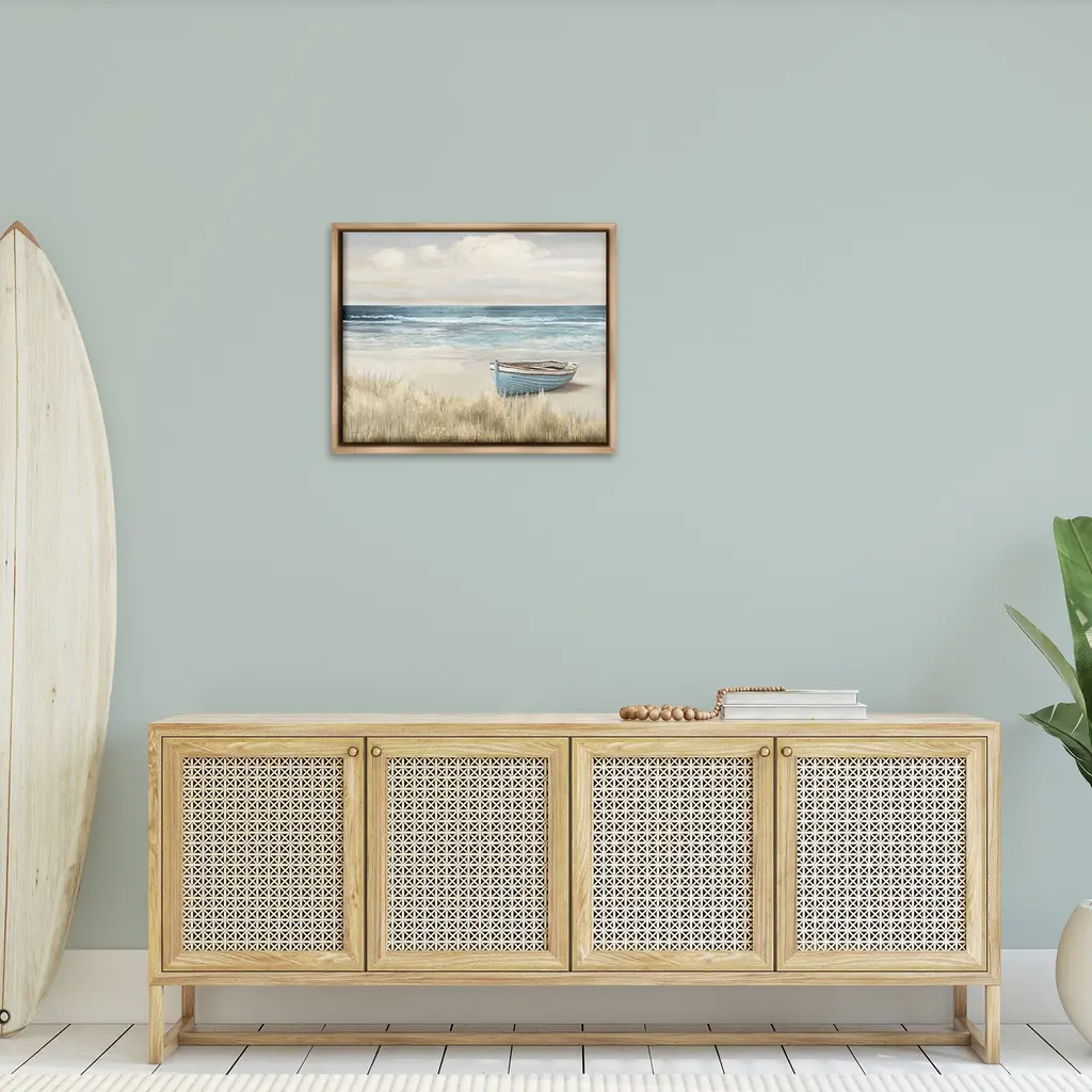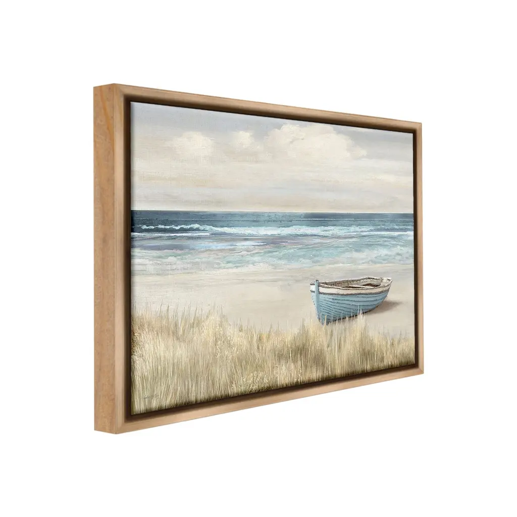 Elevate your home or office to the next level with Stupell Framed Floating Canvas Wall Art. Our premium hand-stretched canvas is mounted securely into a sturdy lightweight frame. The museum-style gap between the wrapped canvas and the box frame gives the illusion of floating artwork. Stupell Wall Art is made in the USA.Features: Dimensions: 21 x 1.7 x 17 Frame, 20 x 1.5 x 16 Canvas ArtFloating Frame Canvas Products are available in sizes 21"x17" and 31"x25". All Floating Frame Canvas Products have a 1.7" Depth.Wall Art is Ready to Hang with Hardware Free Hanging. No Installation required. For Easy Set Up Lean or Layer Artwork on Shelf or Against Wall. Artwork is Permently Fixed into the Frame.Our elevated 1.7" Thick Floating Frame is the perfect complement to our canvas style Wall Art. We use only the highest quality inks in house with industry leading printing solutions. Canvas is hand stretched over a durable wood foundation and then mounted securly into a Modern Box Frame. Made in the USA.Artwork Relates To: Painting, Sea, Water, Beach, Coast, Shoreline, Sky, Scenery, Horizon, Landscape, Boat, WatercraftDesign by Amber Sterling