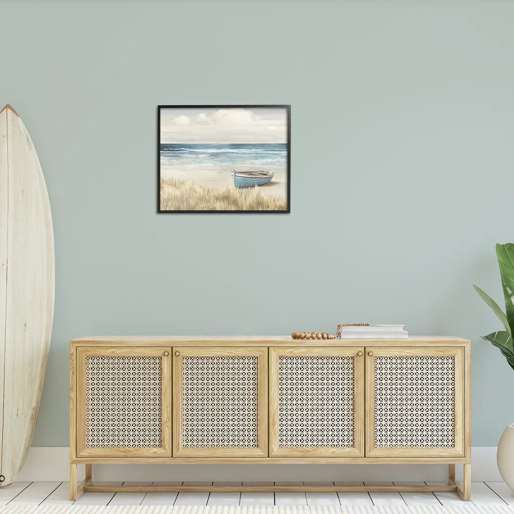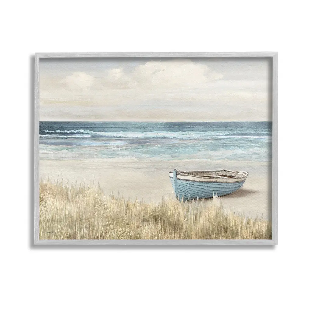 Add dimension to any room with our textured Framed Giclee Artwork. Our framed artwork is securely mounted into a 1.5-inch thick wood grain frame and ready to hang. Frames are available in three alluring styles: black, gray farmhouse and white. In addition, you should check out our oversized options if you want a statement piece. Stupell Wall Art is made in the USA.Features: Dimensions: 14 x 1.5 x 11 FramedFramed Giclee Products are available in the sizes 14"x11", 20"x16" or 30"x24". All Framed Giclee Products have a 1.5" Depth. Wall Art is Ready to Hang with Hardware Free Hanging. No installation required. For Easy Set Up Lean or Layer Artwork on Shelf or Against Wall.Our giclée prints are carefully mounted on a durable MDF backing, and then perfectly finished in a 1.5 inch thick woodgrain frame. Mounted frame colors include black, gray farmhouse and white. Made In USA.Artwork Relates To: Painting, Sea, Water, Beach, Coast, Shoreline, Sky, Scenery, Horizon, Landscape, Boat, WatercraftDesign by Amber Sterling