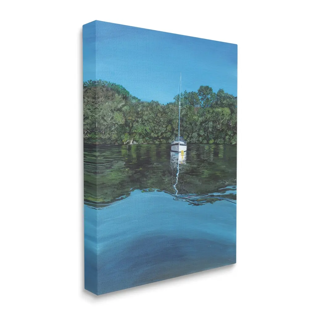 We create our stretched canvas to the highest standards. Using only the highest quality inks and canvas on Mimaki printers, we hand-cut and stretch each piece over a 1.5-inch thick wooden frame for hanging. As a result, the art comes ready to hang on the sturdy ledge with no installation required. Stupell Wall Art is made in the USA.Features: Dimensions: 16 x 1.5 x 20 InchesStretched Canvas Sizes Include Standard: 16 x 1.5 x 20 Large: 20 x 1.5 x 30 X-Large: 30 x 1.5 x 40 Oversized: 36 x 1.5 x 48Wall Art is Ready to Hang with Hardware Free Hanging. No installation required. For Easy Set Up Lean or Layer Artwork on Shelf or Against Wall.Our stretched canvas is created with the highest standards. We use only the highest quality inks and canvas on our in house Mimaki printers, and then hand cut and stretch each piece over a 1.5 inch thick wooden frame for hanging. Made In USA.Artwork Relates To: Boat, Sailboat, Transportation, Vehicle, Scenery, Watercraft, Water, OceanDesign by Georgie Harrison