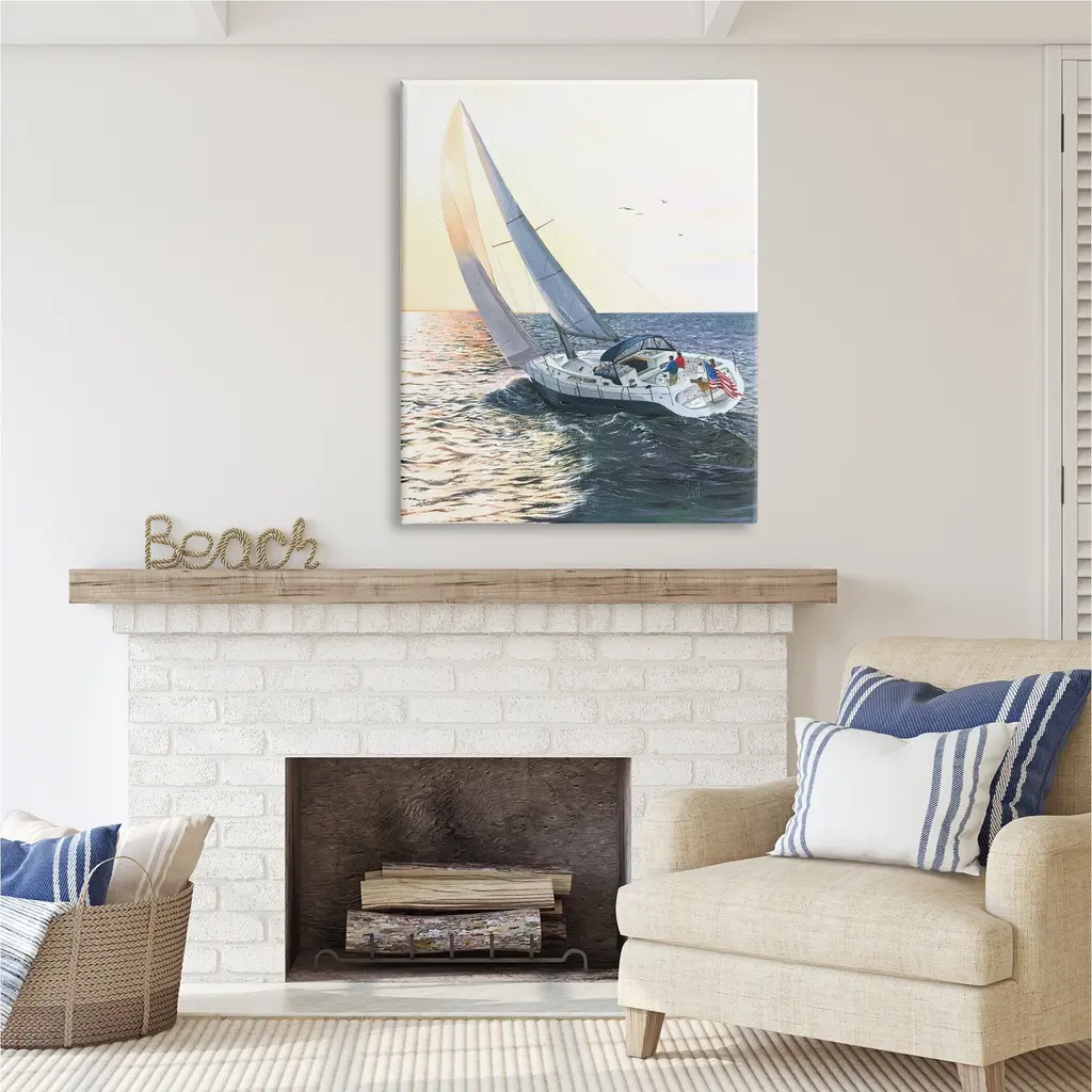 We create our stretched canvas to the highest standards. Using only the highest quality inks and canvas on Mimaki printers, we hand-cut and stretch each piece over a 1.5-inch thick wooden frame for hanging. As a result, the art comes ready to hang on the sturdy ledge with no installation required. Stupell Wall Art is made in the USA.Features: Dimensions: 16 x 1.5 x 20 InchesStretched Canvas Sizes Include Standard: 16 x 1.5 x 20 Large: 20 x 1.5 x 30 X-Large: 30 x 1.5 x 40 Oversized: 36 x 1.5 x 48Wall Art is Ready to Hang with Hardware Free Hanging. No installation required. For Easy Set Up Lean or Layer Artwork on Shelf or Against Wall.Our stretched canvas is created with the highest standards. We use only the highest quality inks and canvas on our in house Mimaki printers, and then hand cut and stretch each piece over a 1.5 inch thick wooden frame for hanging. Made In USA.Artwork Relates To: Boat, Sailboat, Transportation, Vehicle, Yacht, Water, Boating, Person, Animal, Bird, American FlagDesign by Scott Westmoreland