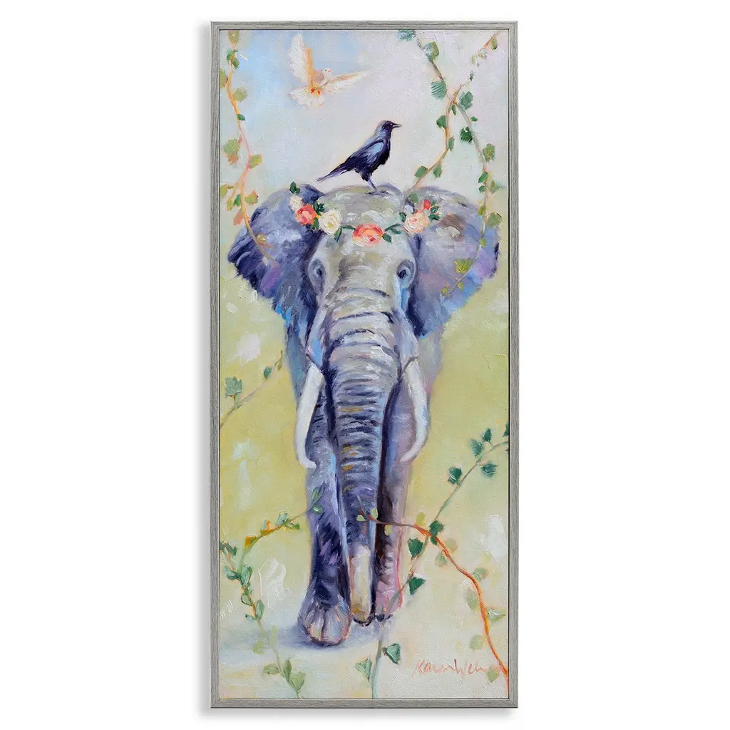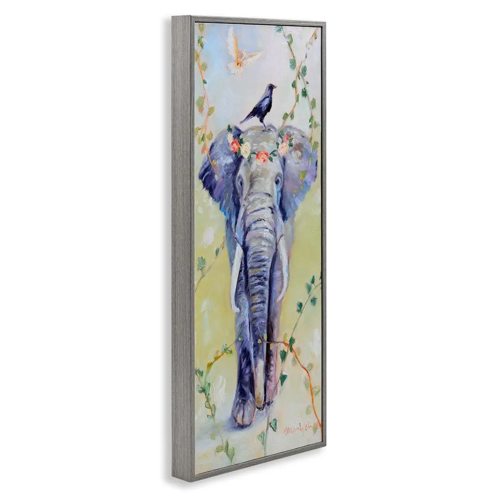 Add dimension to any room with our textured Framed Giclee Artwork. Our framed artwork is securely mounted into a 1.5-inch thick wood grain frame and ready to hang. Frames are available in three alluring styles: black, gray farmhouse and white. In addition, you should check out our oversized options if you want a statement piece. Stupell Wall Art is made in the USA.Features: Dimensions: 10 x 1.5 x 24 FramedFramed Giclee Product Sizes include 10"x24" and 13"x30". All Framed Giclee products have a 1.5" Depth.Wall Art is Ready to Hang with Hardware Free Hanging. No installation required. For Easy Set Up Lean or Layer Artwork on Shelf or Against Wall.Our giclée prints are carefully mounted on a durable MDF backing, and then perfectly finished in a 1.5 inch thick woodgrain frame. Mounted frame colors include black, gray farmhouse and white. Made In USA.Artwork Relates To: Animal, Elephant, Bird, Pattern, Botanical, Leaf, Plant, VinesDesign by Karen Weber Fine Art
