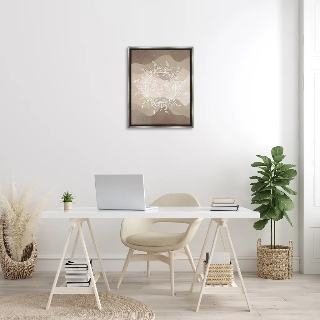 Stupell Boho Celestial Sun Framed Floater Canvas Wall Art Design By Lil' Rue - 25 X 31 - Grey