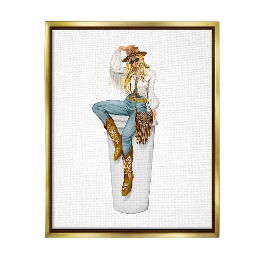 Stupell Boho Cowgirl & Coffee Framed Floater Canvas Wall Art Design By Ziwei Li - 17 X 21 - Black
