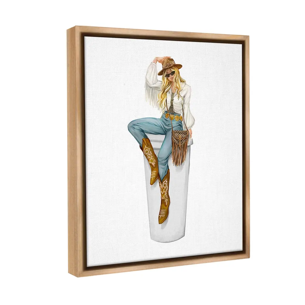 Elevate your home or office to the next level with Stupell Framed Floating Canvas Wall Art. Our premium hand-stretched canvas is mounted securely into a sturdy lightweight frame. The museum-style gap between the wrapped canvas and the box frame gives the illusion of floating artwork. Stupell Wall Art is made in the USA.Features: Dimensions: 17 x 1.7 x 21 Frame, 16 x 1.5 x 20 Canvas ArtFloating Frame Canvas Products are available in sizes 17"x21" and 25"x31". All Floating Frame Canvas Products have a 1.7" Depth.Wall Art is Ready to Hang with Hardware Free Hanging. No Installation required. For Easy Set Up Lean or Layer Artwork on Shelf or Against Wall. Artwork is Permently Fixed into the Frame.Our elevated 1.7" Thick Floating Frame is the perfect complement to our canvas style Wall Art. We use only the highest quality inks in house with industry leading printing solutions. Canvas is hand stretched over a durable wood foundation and then mounted securly into a Modern Box Frame. Made in the USA.Artwork Relates To: Equestrian, Rodeo, Country, Southwestern, Cowgirl, Glam, Fashion, CoffeeDesign by Ziwei Li