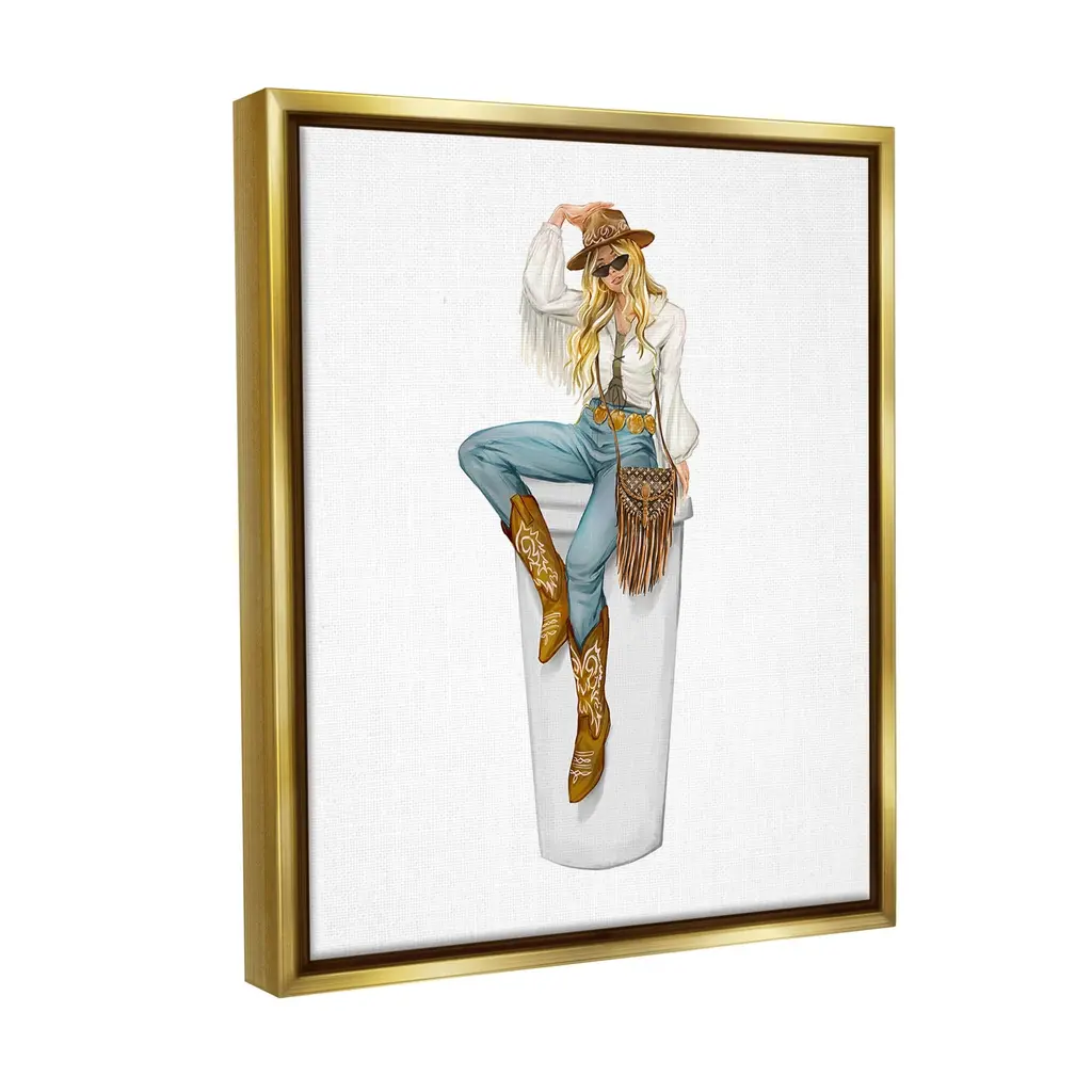 Stupell Boho Cowgirl & Coffee Framed Floater Canvas Wall Art Design By Ziwei Li - 25 X 31 - Gold
