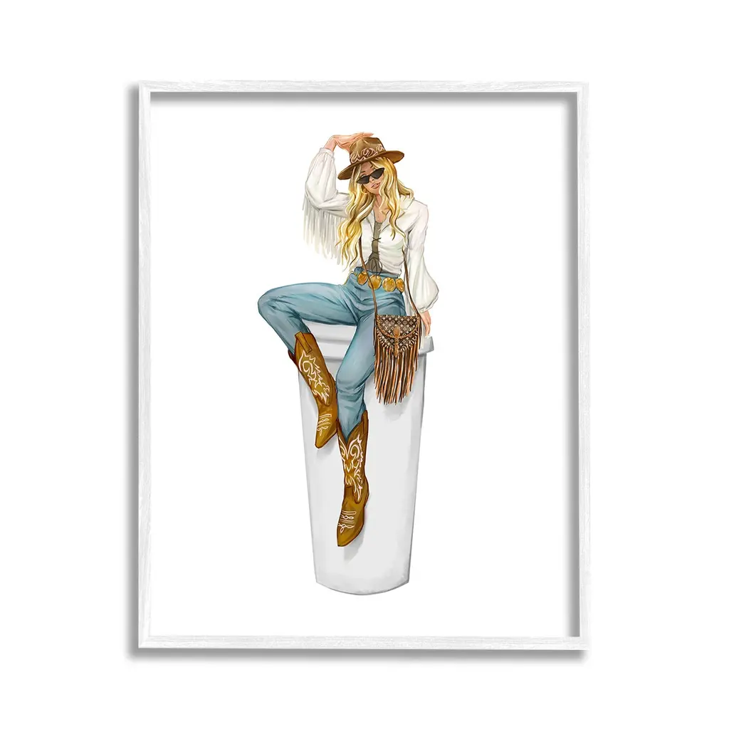 Add dimension to any room with our textured Framed Giclee Artwork. Our framed artwork is securely mounted into a 1.5-inch thick wood grain frame and ready to hang. Frames are available in three alluring styles: black, gray farmhouse and white. In addition, you should check out our oversized options if you want a statement piece. Stupell Wall Art is made in the USA.Features: Dimensions: 11 x 1.5 x 14 FramedFramed Giclee Products are available in the sizes 11"x14", 16"x20" or 24"x30". All Framed Giclee Products have a 1.5" Depth. Wall Art is Ready to Hang with Hardware Free Hanging. No installation required. For Easy Set Up Lean or Layer Artwork on Shelf or Against Wall.Our giclée prints are carefully mounted on a durable MDF backing, and then perfectly finished in a 1.5 inch thick woodgrain frame. Mounted frame colors include black, gray farmhouse and white. Made In USA.Artwork Relates To: Equestrian, Rodeo, Country, Southwestern, Cowgirl, Glam, Fashion, CoffeeDesign by Ziwei Li