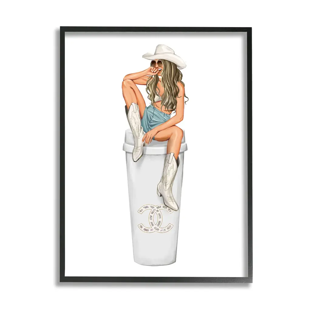 Add dimension to any room with our textured Framed Giclee Artwork. Our framed artwork is securely mounted into a 1.5-inch thick wood grain frame and ready to hang. Frames are available in three alluring styles: black, gray farmhouse and white. In addition, you should check out our oversized options if you want a statement piece. Stupell Wall Art is made in the USA.Features: Dimensions: 11 x 1.5 x 14 FramedFramed Giclee Products are available in the sizes 11"x14", 16"x20" or 24"x30". All Framed Giclee Products have a 1.5" Depth. Wall Art is Ready to Hang with Hardware Free Hanging. No installation required. For Easy Set Up Lean or Layer Artwork on Shelf or Against Wall.Our giclée prints are carefully mounted on a durable MDF backing, and then perfectly finished in a 1.5 inch thick woodgrain frame. Mounted frame colors include black, gray farmhouse and white. Made In USA.Artwork Relates To: Equestrian, Rodeo, Country, Southwestern, Cowgirl, Glam, Fashion, CoffeeDesign by Ziwei Li