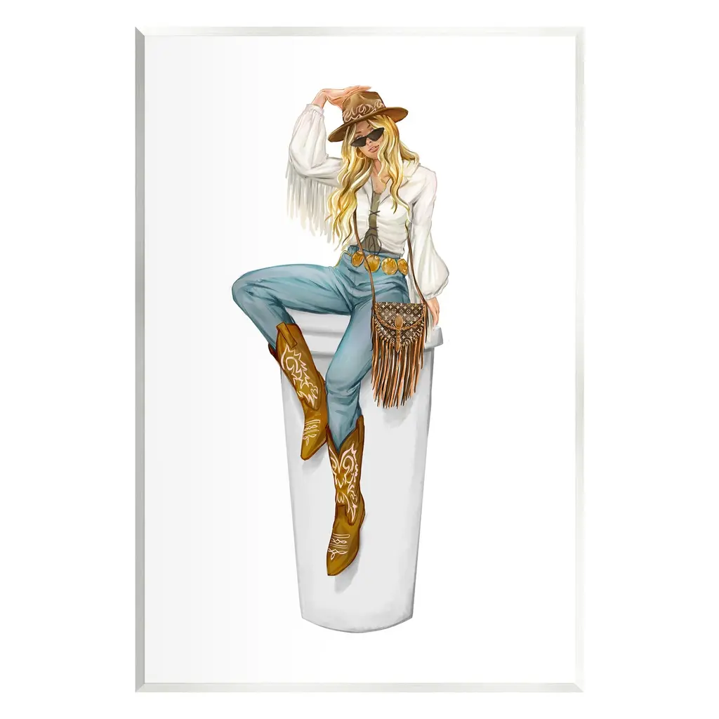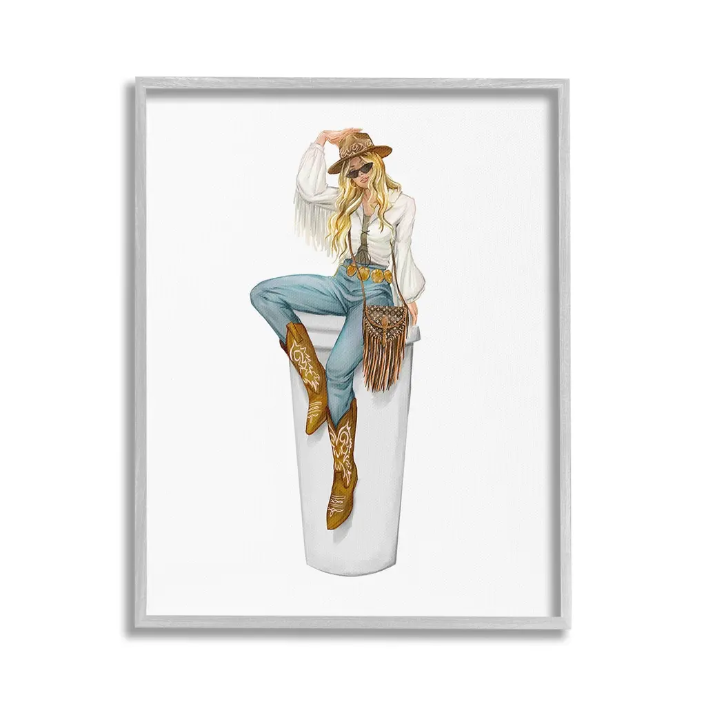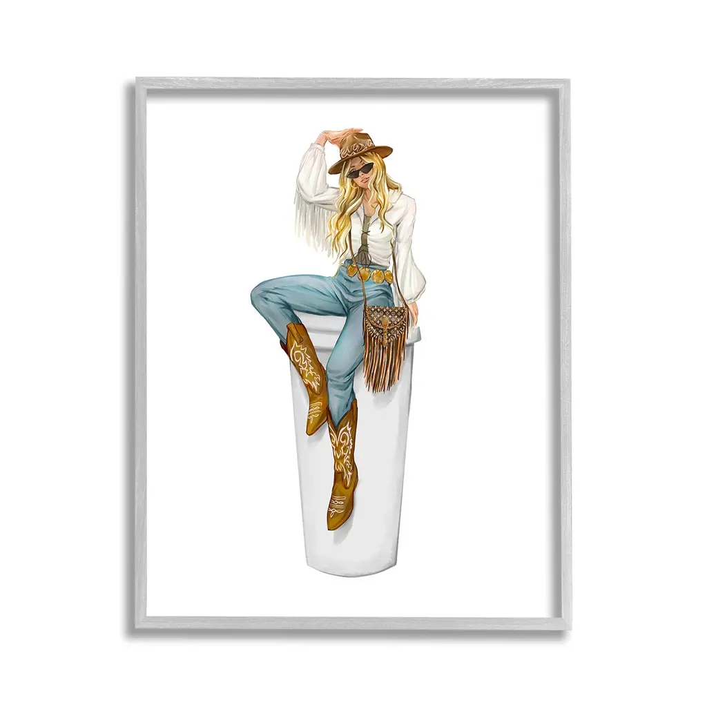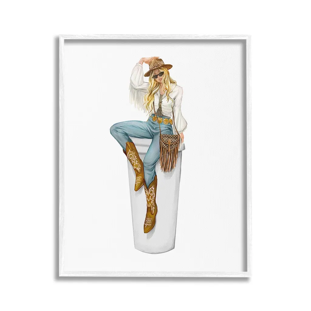 Add dimension to any room with our textured Framed Giclee Artwork. Our framed artwork is securely mounted into a 1.5-inch thick wood grain frame and ready to hang. Frames are available in three alluring styles: black, gray farmhouse and white. In addition, you should check out our oversized options if you want a statement piece. Stupell Wall Art is made in the USA.Features: Dimensions: 11 x 1.5 x 14 FramedFramed Giclee Products are available in the sizes 11"x14", 16"x20" or 24"x30". All Framed Giclee Products have a 1.5" Depth. Wall Art is Ready to Hang with Hardware Free Hanging. No installation required. For Easy Set Up Lean or Layer Artwork on Shelf or Against Wall.Our giclée prints are carefully mounted on a durable MDF backing, and then perfectly finished in a 1.5 inch thick woodgrain frame. Mounted frame colors include black, gray farmhouse and white. Made In USA.Artwork Relates To: Equestrian, Rodeo, Country, Southwestern, Cowgirl, Glam, Fashion, CoffeeDesign by Ziwei Li