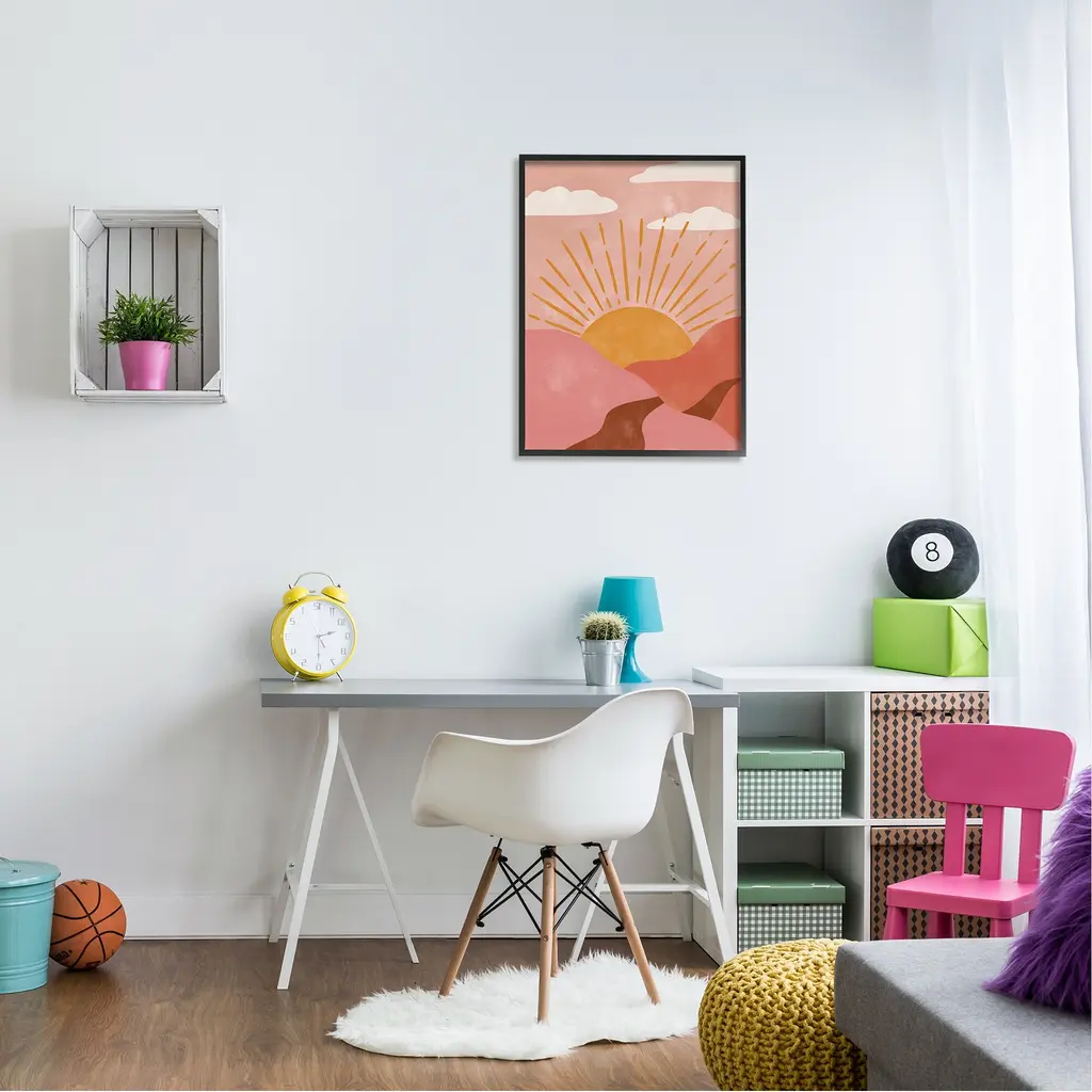 Stupell Boho Desert Sun Setting Beneath Mountain Path Framed Wall Art - Pink - 24 X 30 - Black
